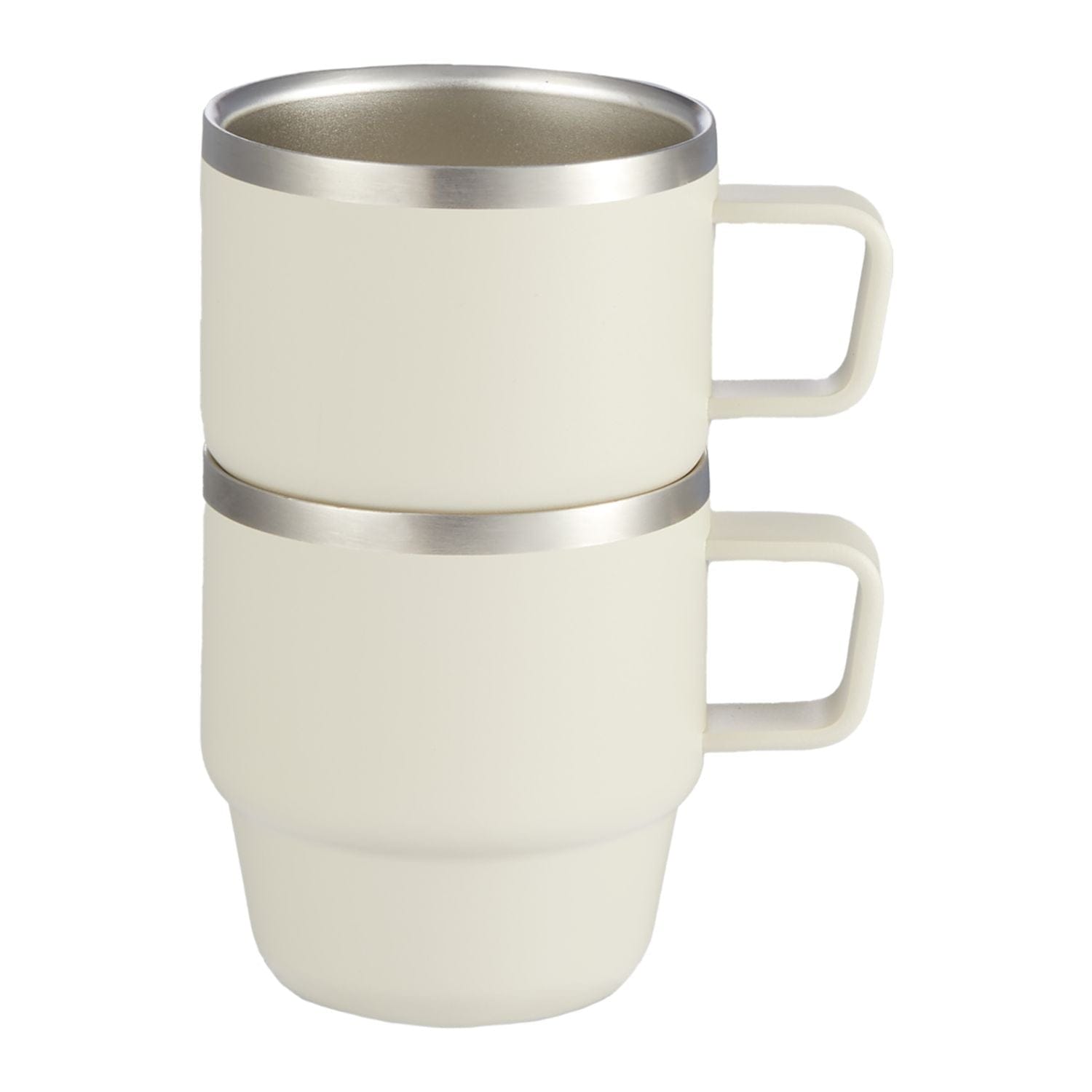 Enjoy coffee, espresso, French press or latte with the Doppio Stackable Recycled Mug Set. Featuring two 6-ounce recycled stainless steel mugs with a space-saving, stackable design. The on-trend neutral colors and sleek design will complement any décor. Shipped in a retail-inspired FSC-Certified giftbox, the Doppio is sure to make a big impression. Handwash only.