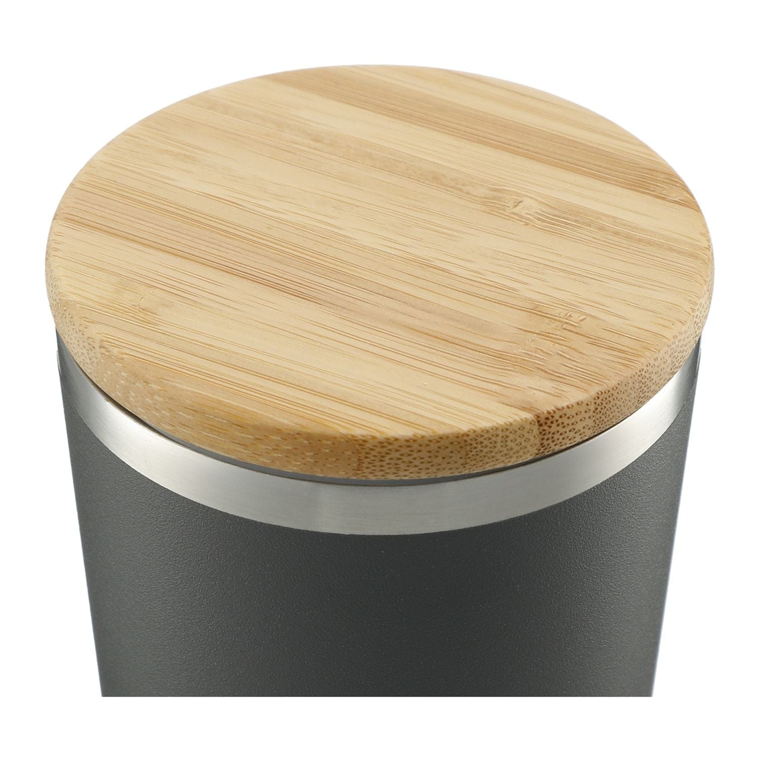 The Brees Copper Vacuum Tumbler with Bamboo Lid 14oz features durable, double-wall stainless steel vacuum construction with copper insulation, which keeps beverages hot for up to 8 hours or cold for up to 24. The construction is designed to prevent condensation on the outside of the tumbler. This tumbler body features an on-trend, durable powder coated finish with a natural FSC-certified bamboo press-on lid. Recommended hand wash only.