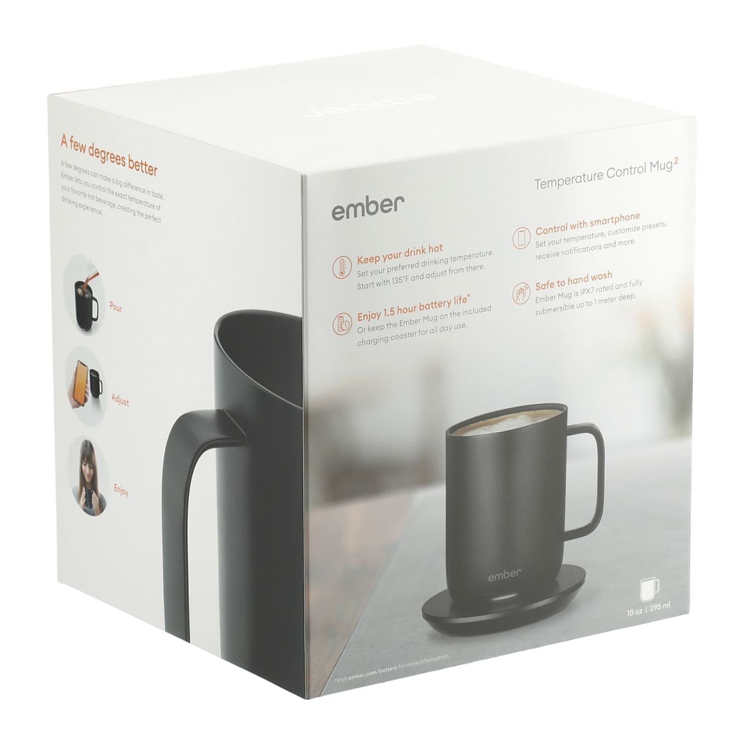 Designed for home or office, the new Ember Mug² does more than simply keep your coffee hot. It allows you to set an exact drinking temperature, so your coffee is never too hot, or too cold. Smart LED indicates when beverage has reached its perfect temperature and more. Select your temperature range as 120°F - 145°F (50°C - 62.5 °C) on the mug or with the Ember app. Built-in Auto-Sleep function intelligently senses when to turn on and off. Ember then maintains your chosen temperature for up to 1.5 hours with the Ember Mug² when off the charging coaster. If you are keeping your beverage hot while using the coaster, it can maintain your perfect temperature all day! Ember Mug² is safe to hand wash and submersible up to 1 meter in water. Compatible for Apple devices operating system: iOS 12.0 and above and Android devices operating system: 8 and above. Once your Ember Mug has an empty battery, place the mug on the charging coaster for approximately 2 hours for a full charge.