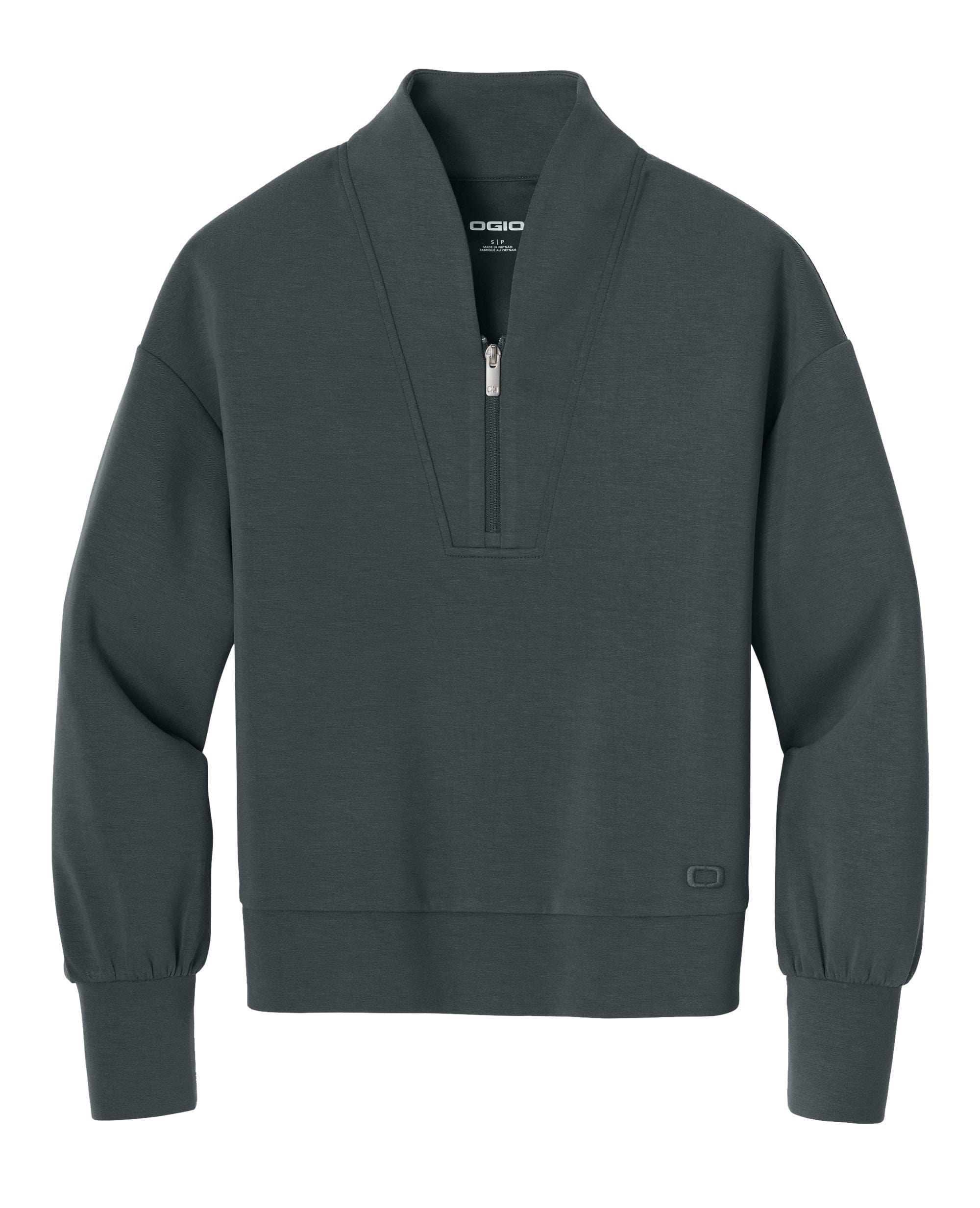 Reverse coil zipper with debossed, brushed silver O icon pull