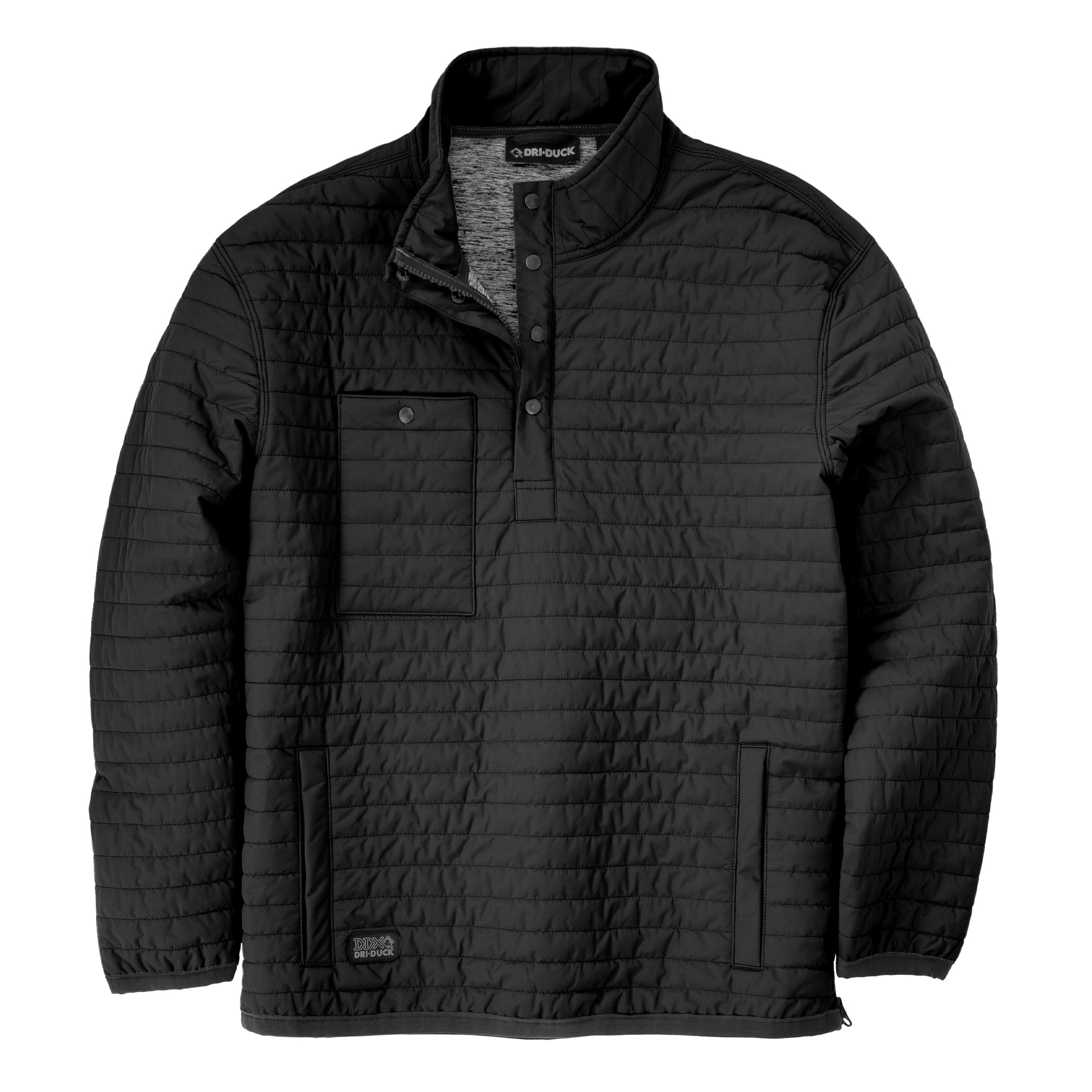 Introducing the Keystone Pullover, the ultimate choice for conquering the elements in style. Whether you're facing a brisk autumn breeze, steady rain, or unpredictable weather, this pullover has you covered. Crafted with precision and packed with innovative features, it's designed to keep you comfortable, dry, and warm in any outdoor adventure. This pullover boasts a thoughtful design with a dual closure featuring a four-snap placket and a heavy-duty zipper with easy grab pull for added protection from the elements. The on-seam side zip opening at the side hem makes for easy on and off, even in a hurry. Stretch binding at cuffs and waistband offer a secure fit, and the exterior chest pocket and hand pockets with snap closures provide functional storage.