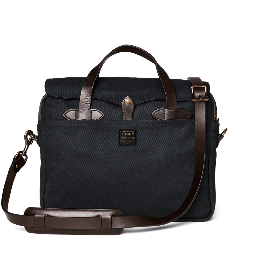 Made with our iconic Rugged Twill and Bridle Leather, the Filson Original Briefcase is built to survive any workplace, whether on land, at sea, or in the air. The lightly waxed fabric sheds water and withstands abrasion, year after year. The handles and detachable, adjustable shoulder strap are built with the same Bridle Leather that's used for making horse tack. The roomy interior has organizational dividers and space for a 15‚Äù laptop and secures with a YKK® solid brass zipper protected by a storm flap. A testament to our signature fabric's durability, one customer recorded over one million miles of travel with his Original Briefcase.