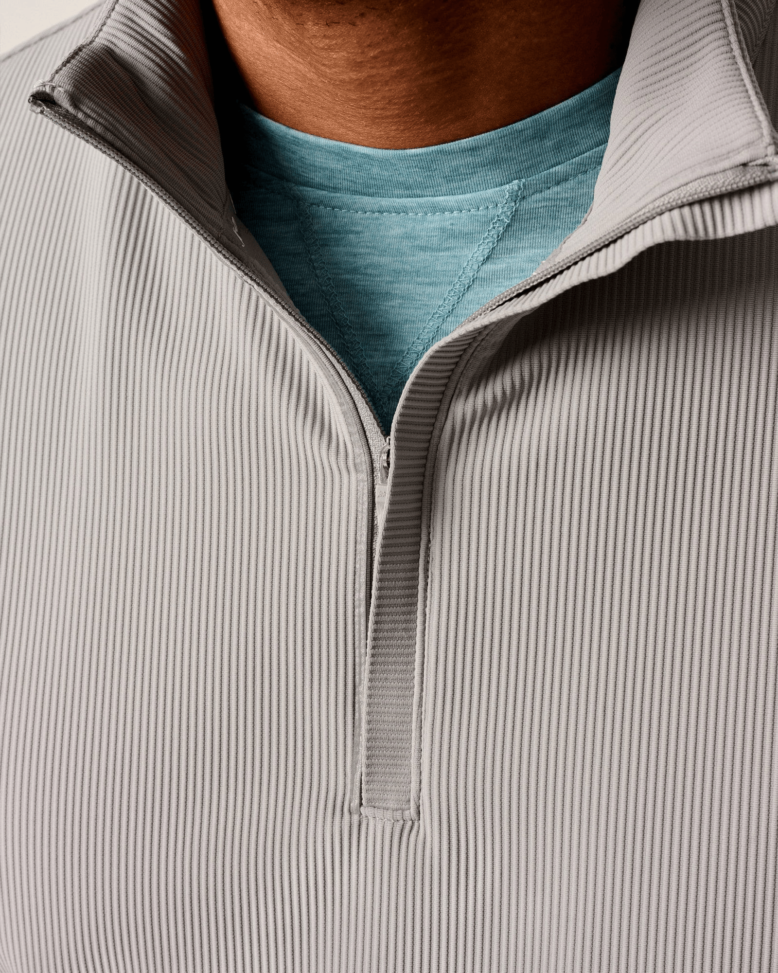 Stretch rib knit quarter zip