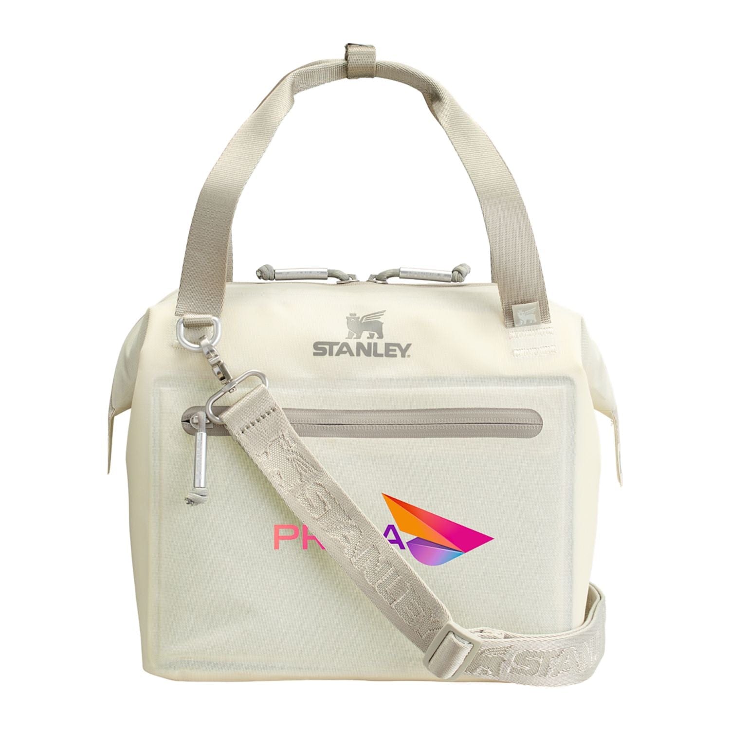 The Stanley All Day Julienne Mini 10 Can Cooler is made from 100% recycled polyester to make dining outside more sustainable. These vibrant coolers with contrast details, and a patterned winged bear liner, hold all you need for picnic dates, city hikes, and weeknights with friends. Head outside to soak up the fun and recharge. With a 10-can storage capacity, the All Day Julienne Mini Cooler keeps your goods nice and cool for 12 hours. The unique “doctor’s bag” hinge top pops open to help with unpacking. Load up with reusable ice packs, pop it shut and the sturdy zipper keeps things safely stored. The snap-top handles have a comfortable grip, while a zippered pocket protects your valuables. There’s also the option to attach the strap to sling the cooler over your shoulder. From acai bowls to charcuterie, sparkling beverages and wine are ready to be enjoyed. Don’t forget to pack all your favorite snacks and drinks in Stanley style.