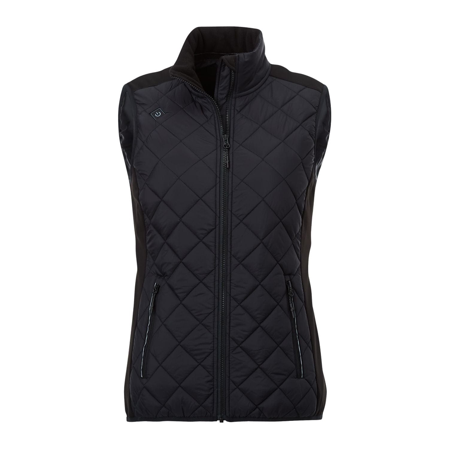 The Shefford Heat Panel Vest delivers lightweight, water-repellent warmth with a shot of exciting technology. The chest and back of this stylish vest have interior heat panels powered by a powerbank with temperature controlled at the touch of a button. The three temperature settings are: Blue = Low (100°F), White = Medium (113°F) and Red = High (131°F). The women's version of the Shefford Heat Panel Vest has shaped seams and a tapered waist for a flattering fit. A powerbank with a minimum of 5000 mAh is required to heat the vest. Powerbank sold separately.