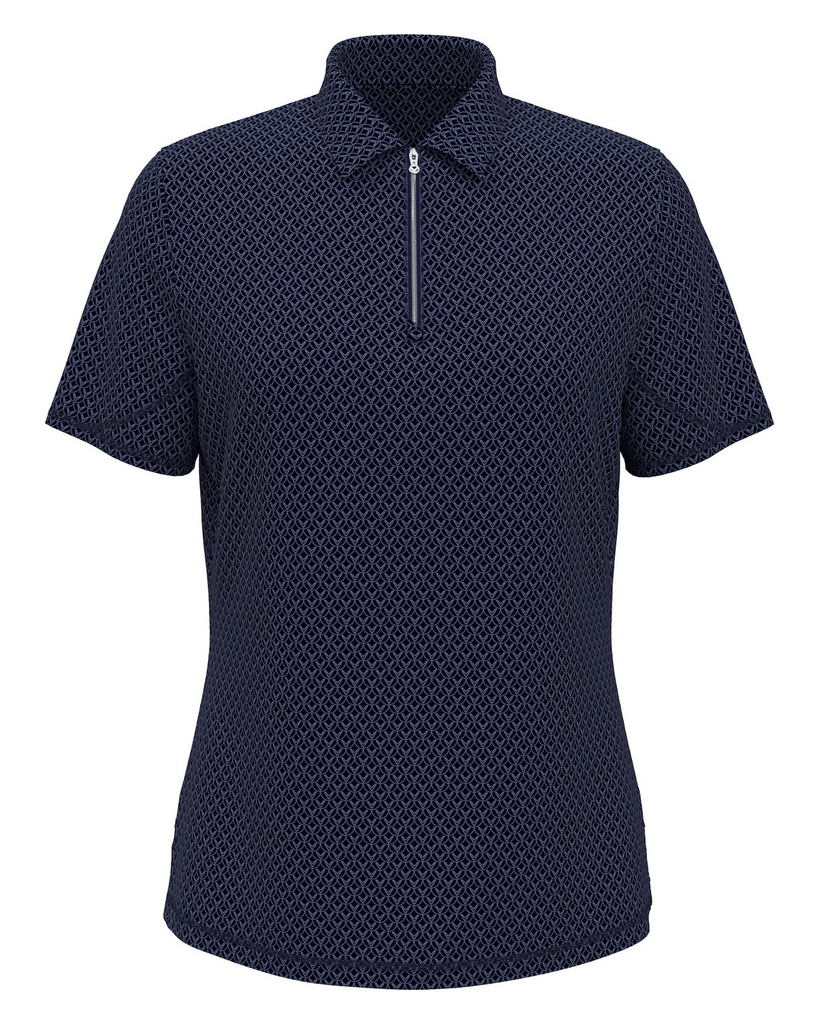 5.0 oz 94% polyester/ 6% spandex jersey knit fabric. Opti-Dri technology transfers moisture away from the body. Stretch fabric moves with you to increase your range of motion. UV Block technology keeps skin safe from the sun's harmful rays. UPF 40. 1/4-Zip with Callaway signature zipper pull. Self fabric collar. Overlock decoration stitch on sleeve. Double needle hemmed bottom with side vents. Tonal Chevron logo embroidered on back collar.