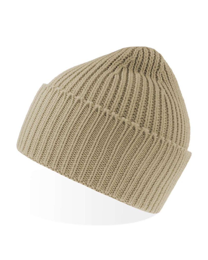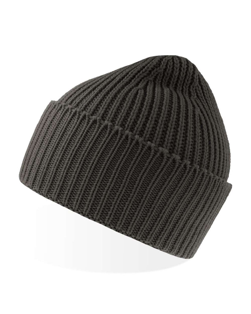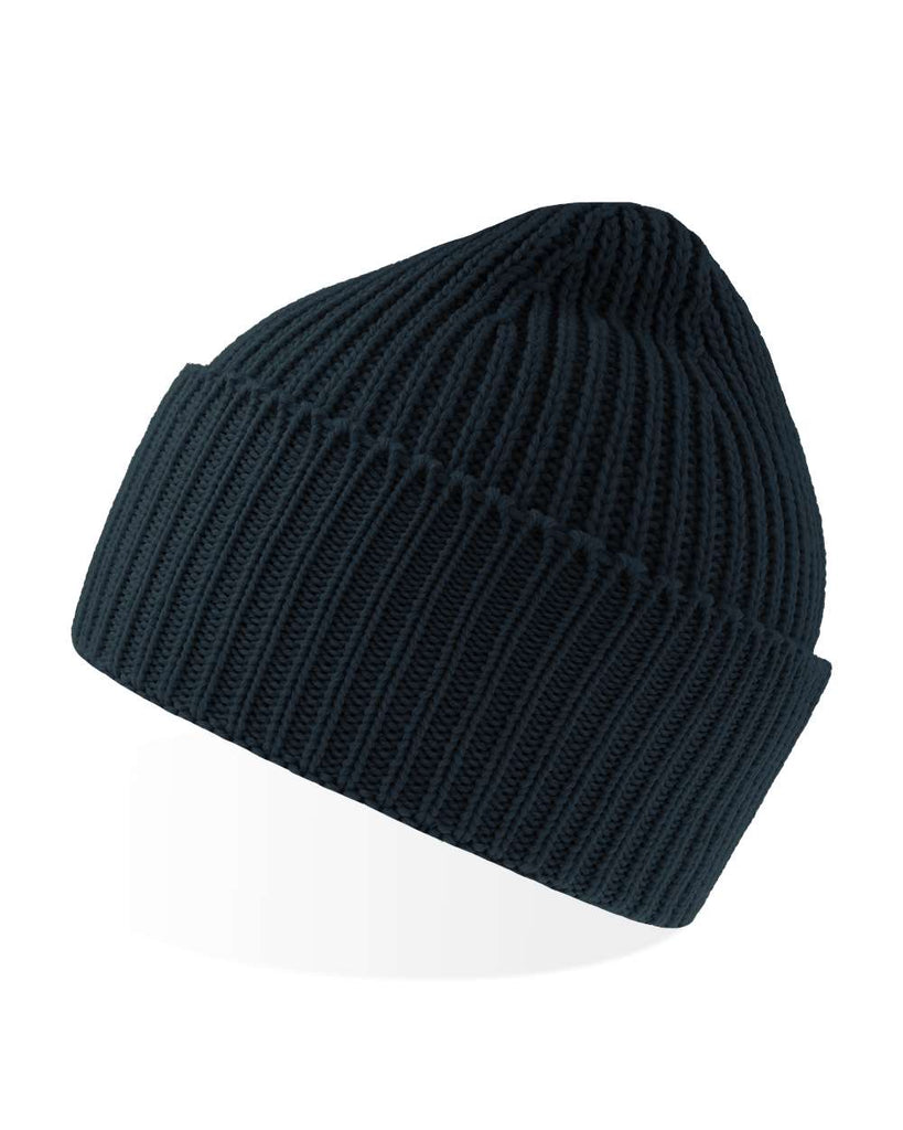 Chunky rib-knitted beanie in soft, warm Polylana® yarn. Single-layer knitting with wide folded cuff and fully fashioned top. Lot of space for broideries on the front.