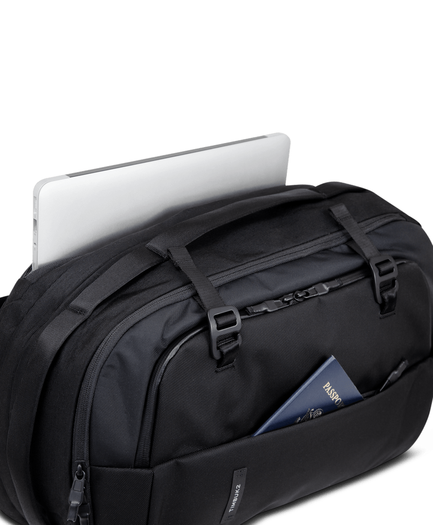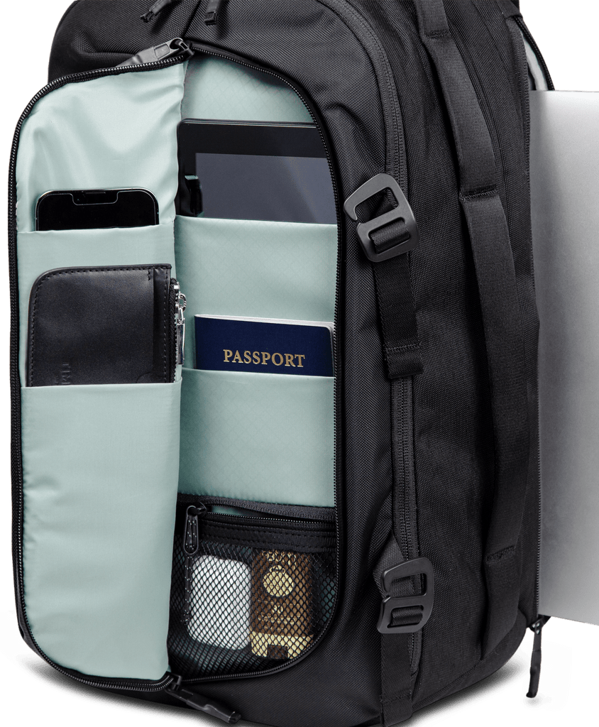 A laptop pack that grows, the Expandable backpack is a carry-on dream come true. Quick access external pockets and a gusseted main compartment zipper with securing hooks mean you can both grab and stuff very quickly, while front pocket organization helps restore calm. Padded shoulder straps and back panel makes airport sprints almost comfortable and weatherproof zippers keep ever threatening liquids out. And all of this in a tasteful package; premium materials and contemporary coloring belie the Expandable's supreme functionality. Always wear it, never check it.