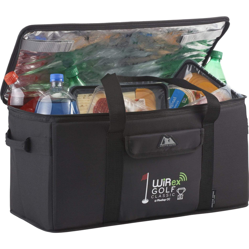 The Arctic Zone 64 Can Knockdown Cooler is the perfect space saving cooler. The cooler can easily be stored in your car trunk or garage folded down, then be set up for tailgating, grocery shopping or a picnic in just a quick second. Fill this cooler with up to 64 cans and carry with ease using the side grab handles. This cooler is PEVA lined and features a front slash pocket.