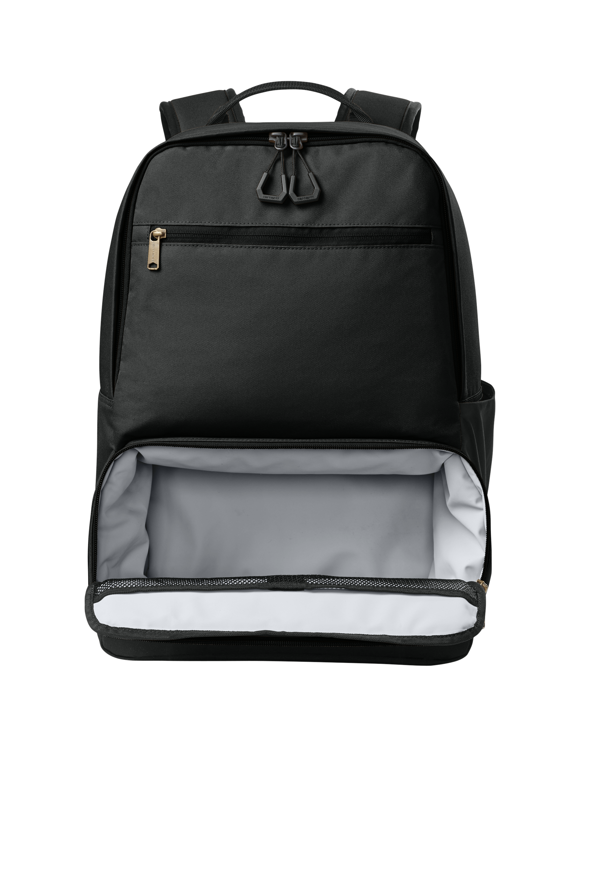 Two interior mesh slip-in pockets with pen sleeves