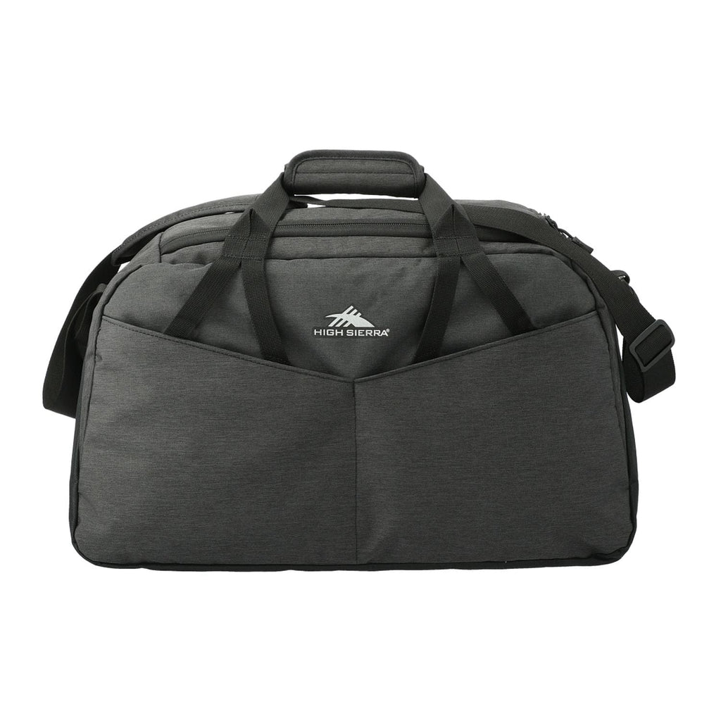 The High Sierra Forester RPET 22" Duffel is designed for all casual travel needs. This duffel features a roomy single compartment design with large U-shaped opening for easy access. The front stash pocket and exterior pockets with organization add extra storage for your must-have items. This duffel is made from water resistant fabric and features a wipe clean interior. Carry using the top grab handles or the adjustable, padded shoulder strap.