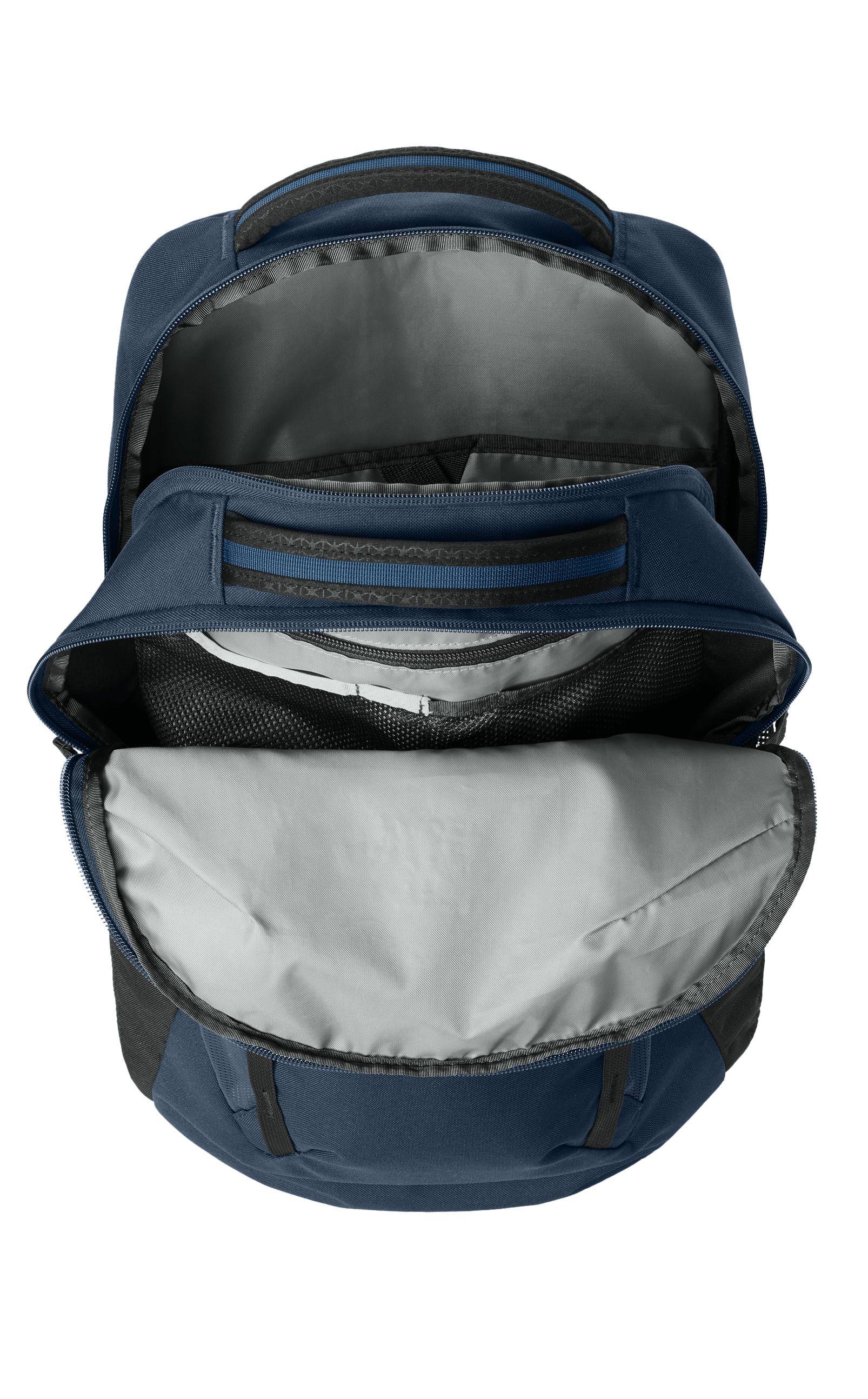 Updated front compartment offers simplified organization and maintains essential features for storage such as secure-zip pockets, tablet sleeve and key fob