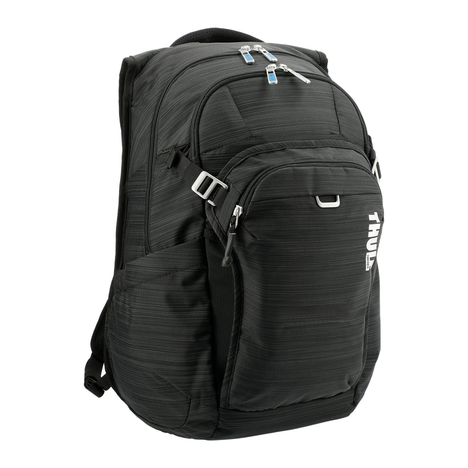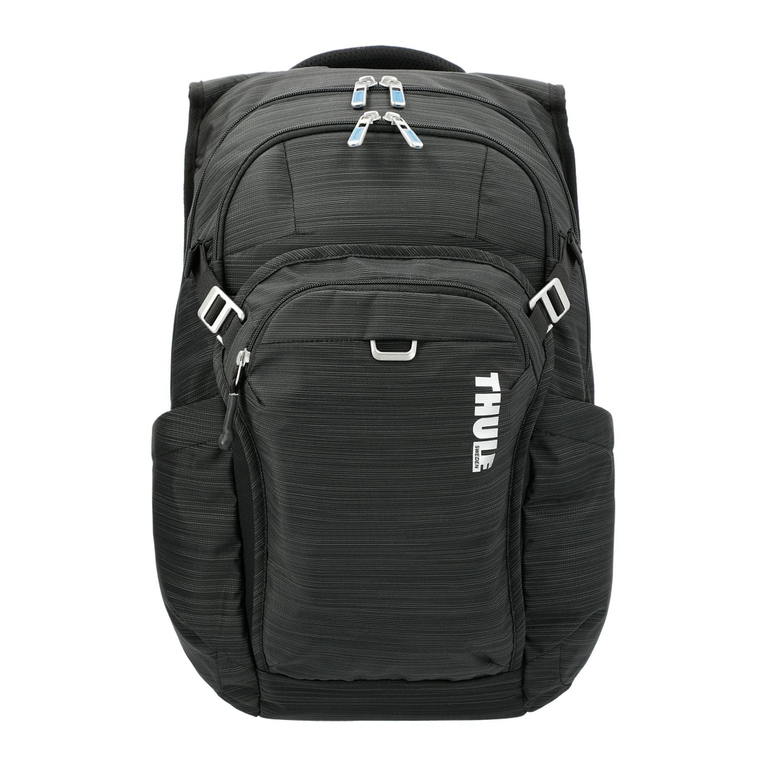 The Thule Construct 24L Backpack is a functional backpack with just the right amount of storage, organization, and casual style to transition from the work week to the weekend. Protect a laptop up to 15.6'' in the elevated, padded pocket and a tablet up to 10.5'' in the dedicated soft-lined pocket. You can keep a phone or glasses safe in the soft-lined protective pocket and store a jacket in the expandable front stash pocket. Get extra storage with the organization panel with multiple pockets and the internal zipped mesh pocket. You’ll be able to quickly access water bottles or store accessories in the expandable side pocket and securely attach backpack to rolling luggage with the pass-through strap. This backpack is constructed with durable materials, custom metal accents, and YKK zippers. Carry in comfort with a padded backpanel with airmesh materials and a padded carry handle.