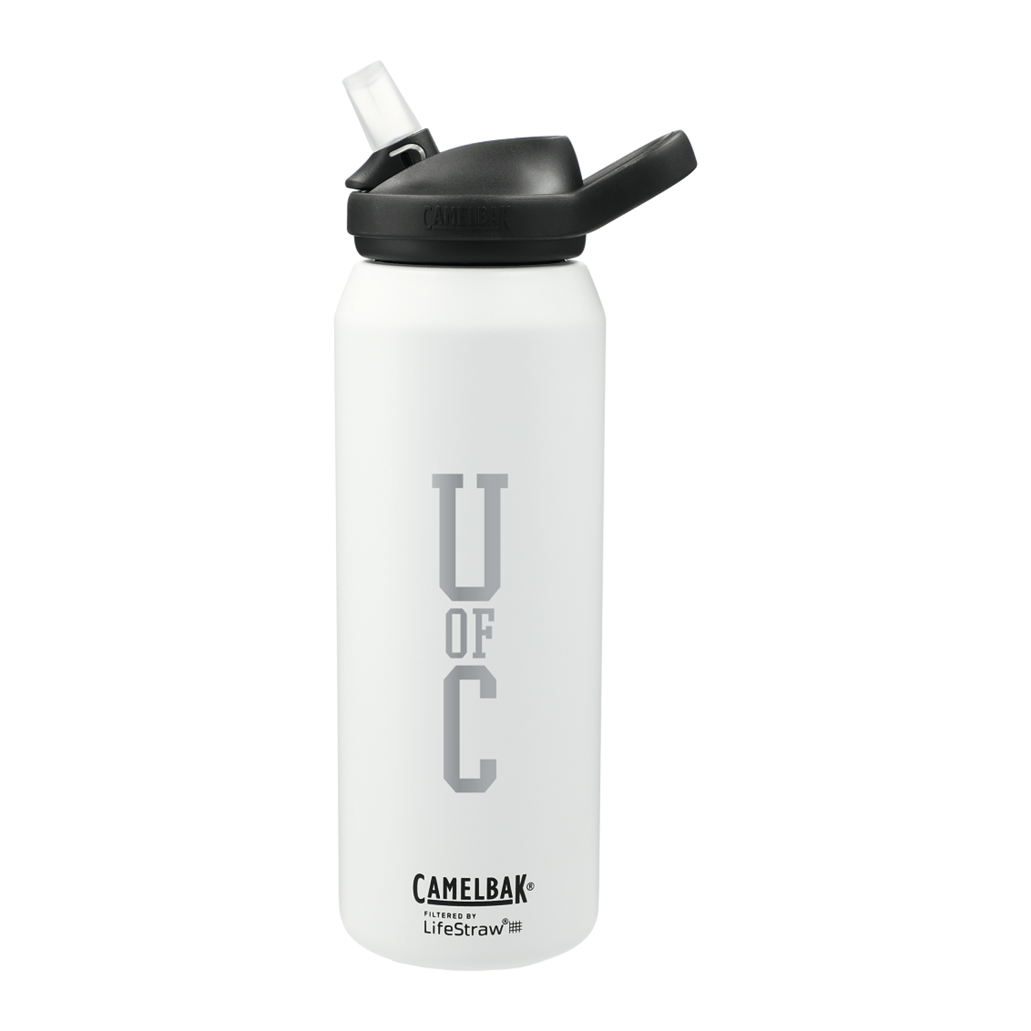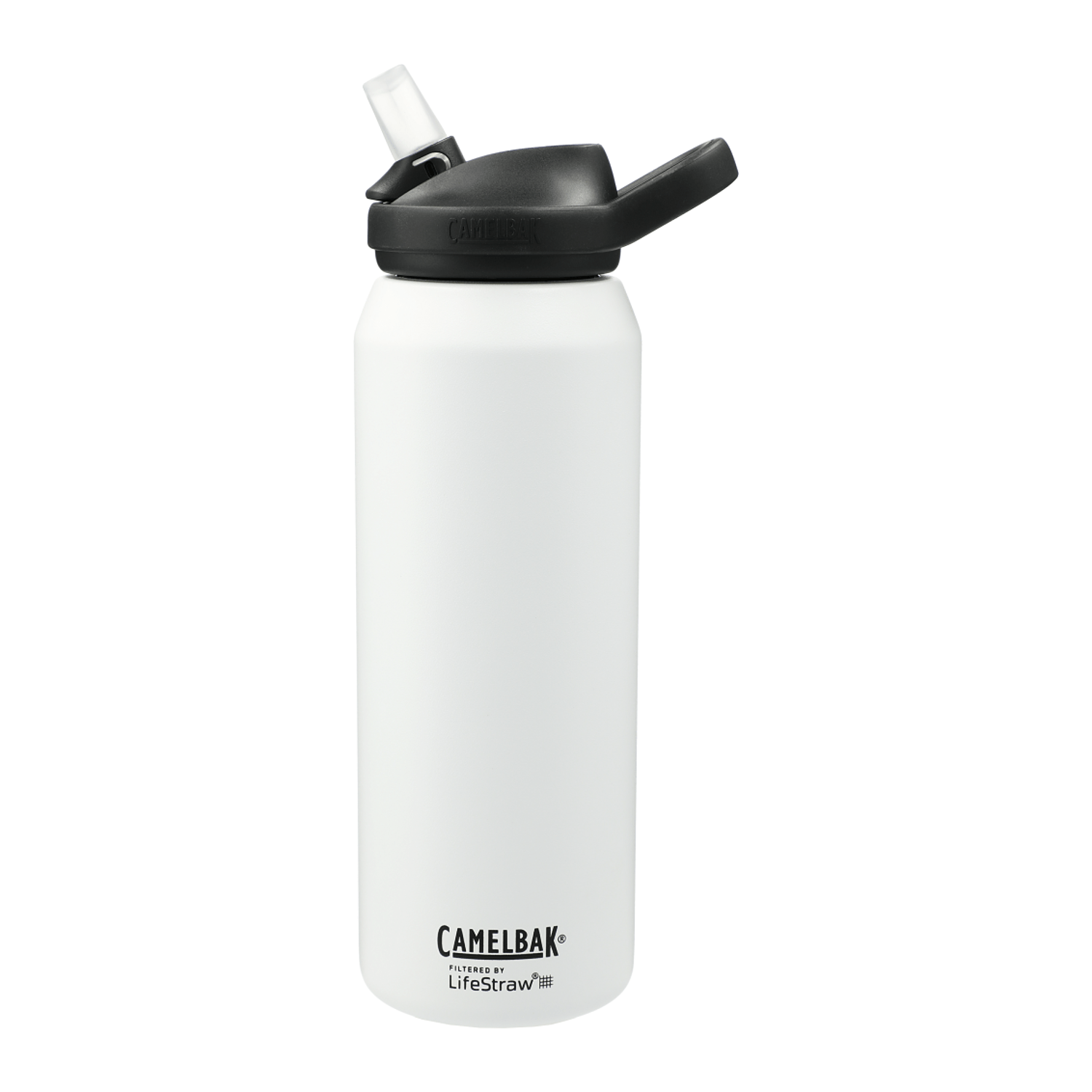 Enjoy spill-proof sipping at work or on the trail with the CamelBak® eddy®+ 32oz VSS Filtered by LifeStraw. This water bottle features a screw-on lid with spill-proof bite valve and one-finger carry handle. No-tip drinking, simply flip open Bite Valve & Sip. This bottle is double-wall 18/8 grade stainless steel with copper vacuum insulation for ultimate conductivity to keep drinks hot for 8 hours and cold for 24 hours. On-trend, durable powder coating. Wide-mouth opening for easy cleaning and filling. This 32oz eddy®+ VSS water bottle features the built-in LifeStraw which gives adventurers the convenience of home hydration wherever they roam. The LifeStraw Filter includes the Ion Exchange Filter and the Hollow Fiber Filter. BPA-free. 32oz. Replacement Filters are available on www.camelbak.com.