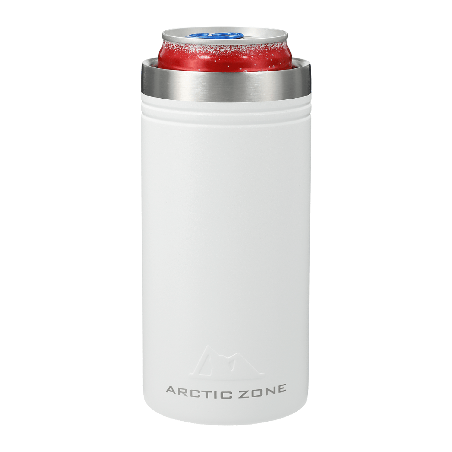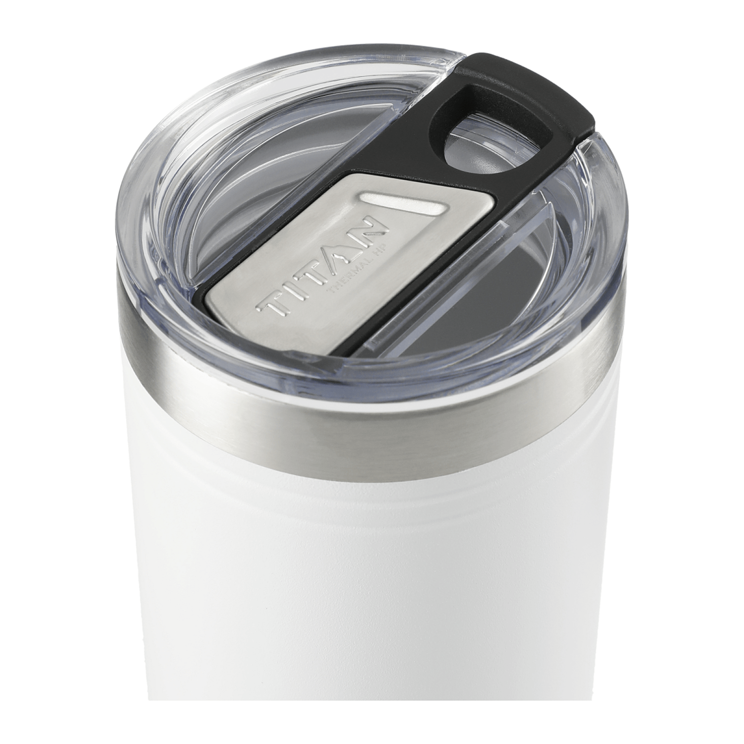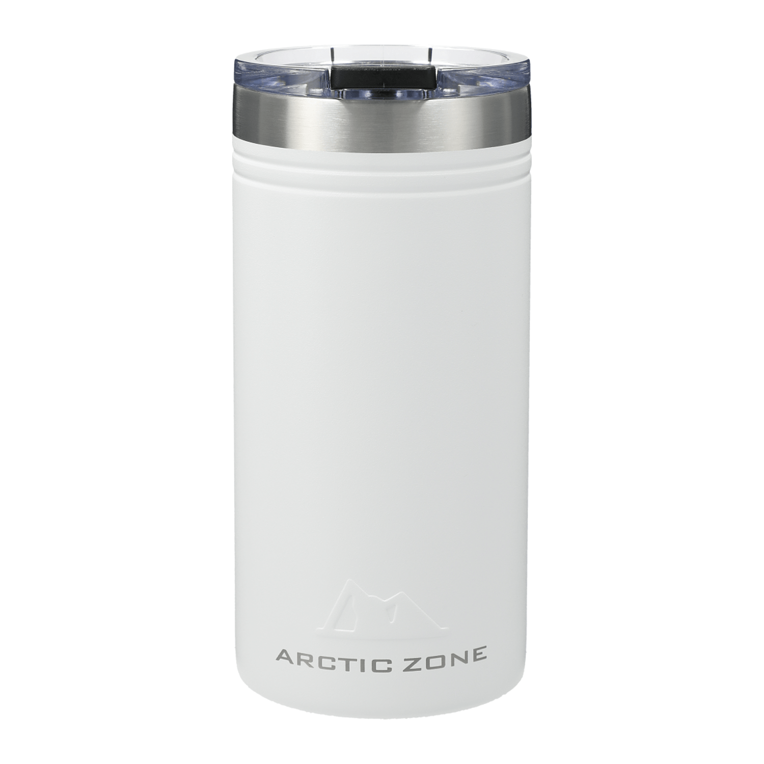 Enjoy a beverage by drinking through the push-on lid with slide closure, or place a slim can inside the tumbler. You choose! Durable, double-wall stainless steel vacuum construction with copper insulation, which allows your beverage to stay cold for 24 hours and hot for at least 8 hours. The construction also prevents condensation on the outside of the tumbler. On-trend, durable powder coating. Wide opening for comfortable filling and pouring. 12oz.