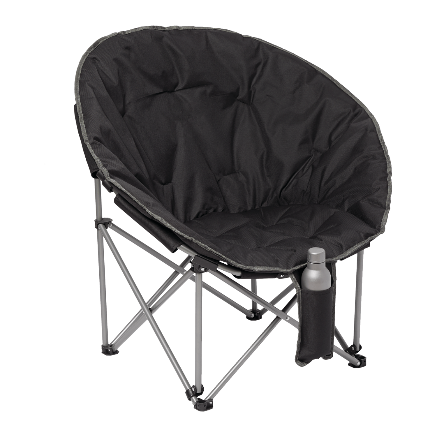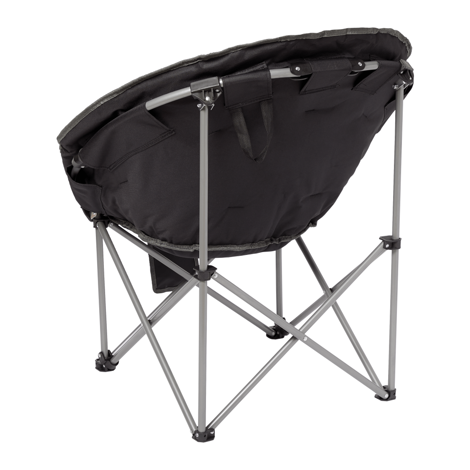 The Folding Moon Chair features an extra sturdy steel frame and a loading weight limit of 400lbs. Made from and durable 600D fabric, this chair features a unique and comfortable rounded "moon" design with padded construction and a front tech pocket. When you're done enjoying the game, simply fold the chair up and pack it away in its study 600D carrying bag. Chair ships outside of bag.