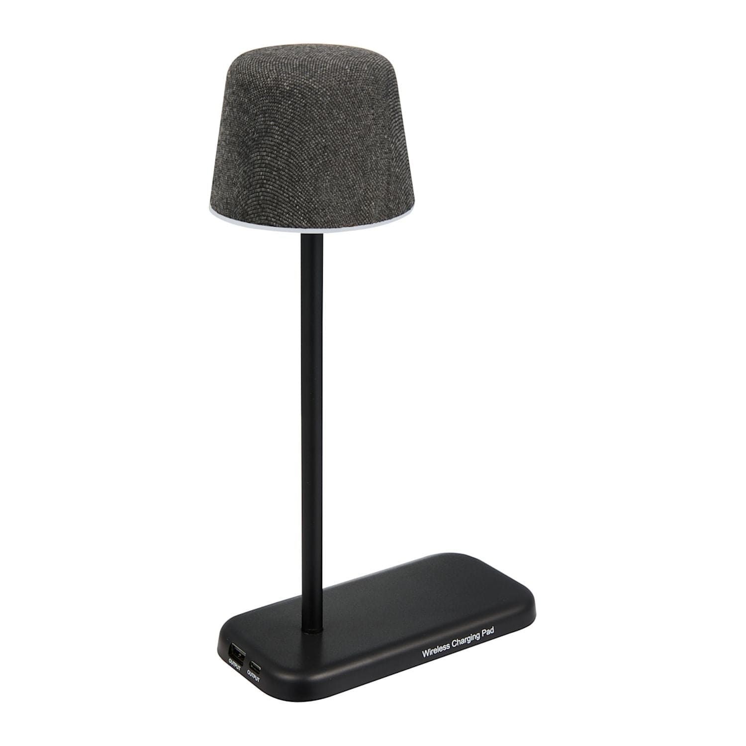 The Sound Shine Desktop Lamp and Bluetooth Speaker is the ultimate multifunctional addition to any workspace. Designed for both illumination and entertainment, the removable lamp features thirty-six dimmable LED lights with warm white and cool white settings to match your environment. The rechargeable lamp provides up to 6.5 hours of light at its brightest setting, ensuring long-lasting brightness. In addition to lighting, the integrated Bluetooth speaker delivers up to five hours of audio playback, allowing you to enjoy music, podcasts, or calls with ease. The base enhances functionality with a built-in 15W wireless charging pad, along with USB-A and USB-C ports for wired charging. Note: The base must be plugged in to use wireless charging and hub features. A USB-A to USB-C charging cable is included for convenience. Fully assembled height is 11.2".