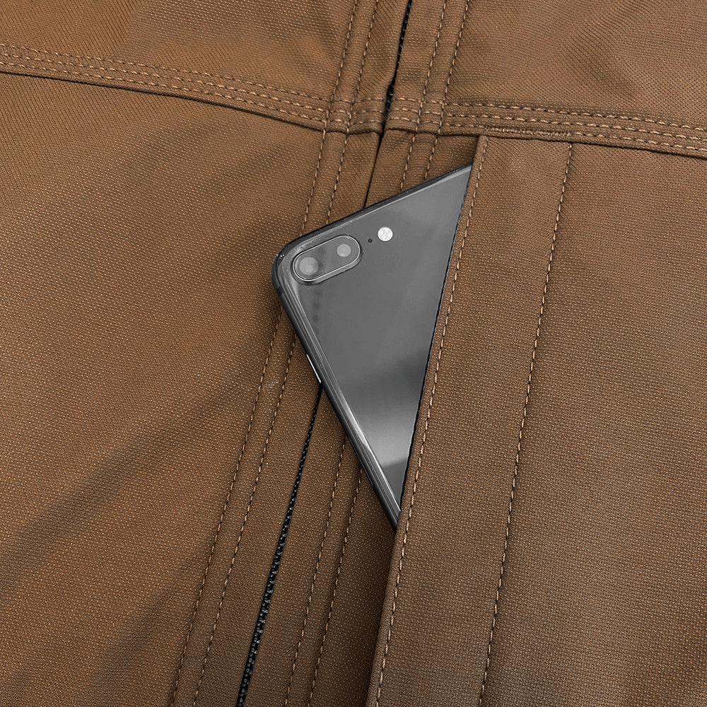 Rigor is the hardest working vest in the business, hands down. It is a heat-retaining, abrasion resistant, windproof, and water resistant vest, all without adding extra, bulky weight. Combining rugged utility with timeless style and versatility, Rigor acts as a warm inner layer—and effectively holds its own as a durable and protective outer layer. Cozy snowtop poly sherpa at the collar and yoke, reflective trim, and a handy cell phone pocket at the chest give this innovative vest added comfort and functionality. The Rigor work vest is the ideal, all-season vest you'll reach for darn near every day.