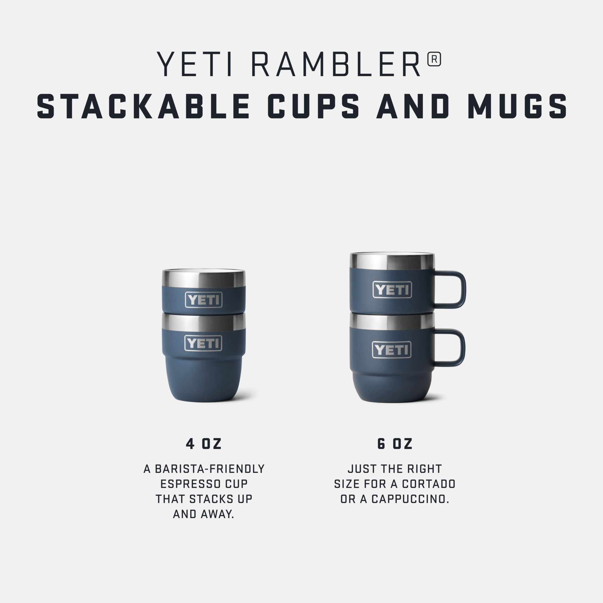 Don’t let the wild get in the way of your coffee ritual. The Rambler® 4 oz. Stackable Cups are perfectly sized for single or double espressos and lined with our ultra-sturdy DuraSip™ Ceramic Lining, you enjoy your espresso without worrying about drops. With a barista-friendly design, they fit under most espresso machines and nest in cabinets as easily as they pack up for the campsite. Comes in a pack of two.