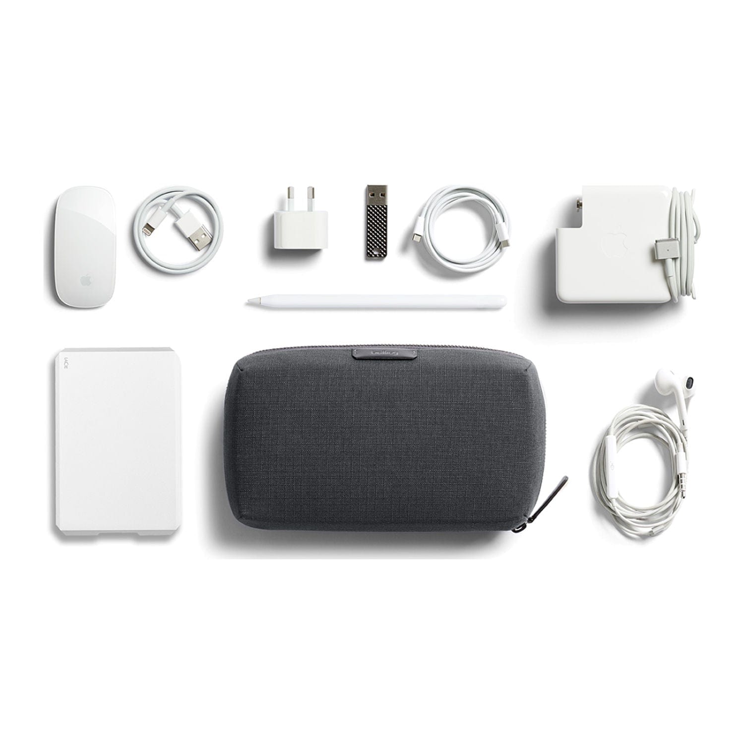 The generously sized Bellroy Tech Organizer makes it easy to organize your tech accessories without tangles. The case zips open and lies flat for easy access. The signature stretch-mesh pockets and elastic cable organizers keep things in place. The magnetic slip pocket can fit a power bank to keep you charged up on the go. The case is made from re-keyed woven fabric. Accessories pictured aren't included.