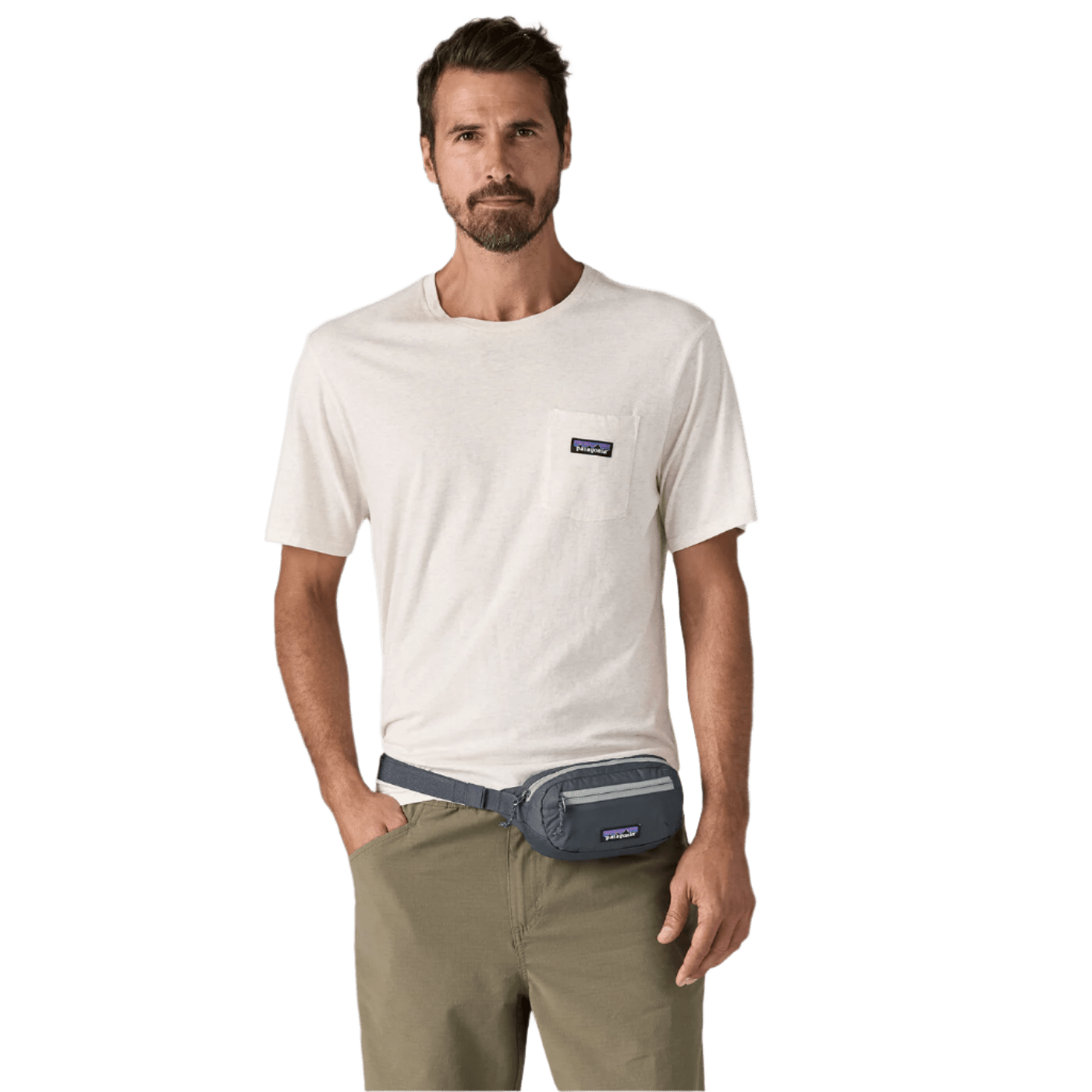 Designed to be worn as a hip pack or a cross-body bag; lightweight, weather-resistant material stands up to everyday use