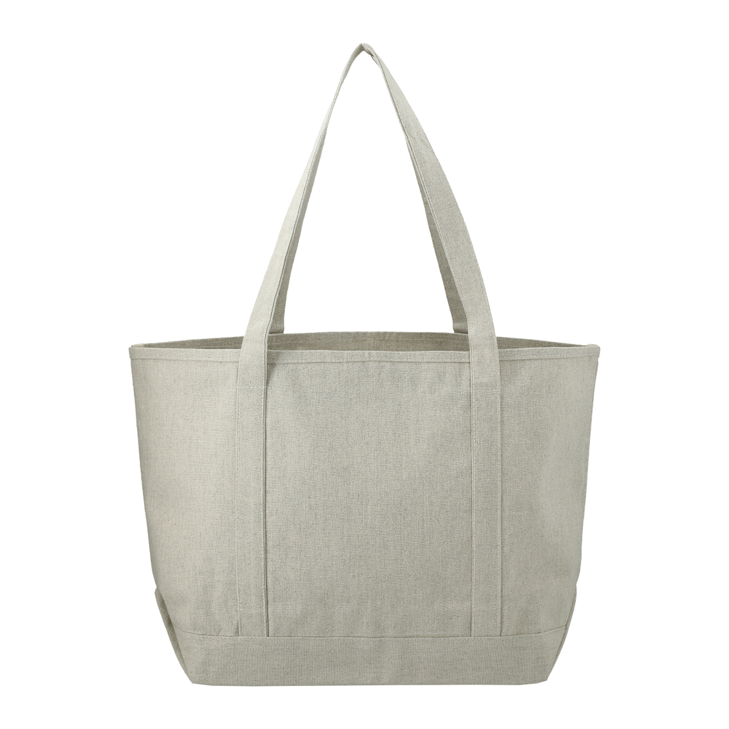 The Repose 10oz Recycled Cotton Tote is made from pre-consumer recycled cotton. It features an open main compartment, slash front pocket and double handles.