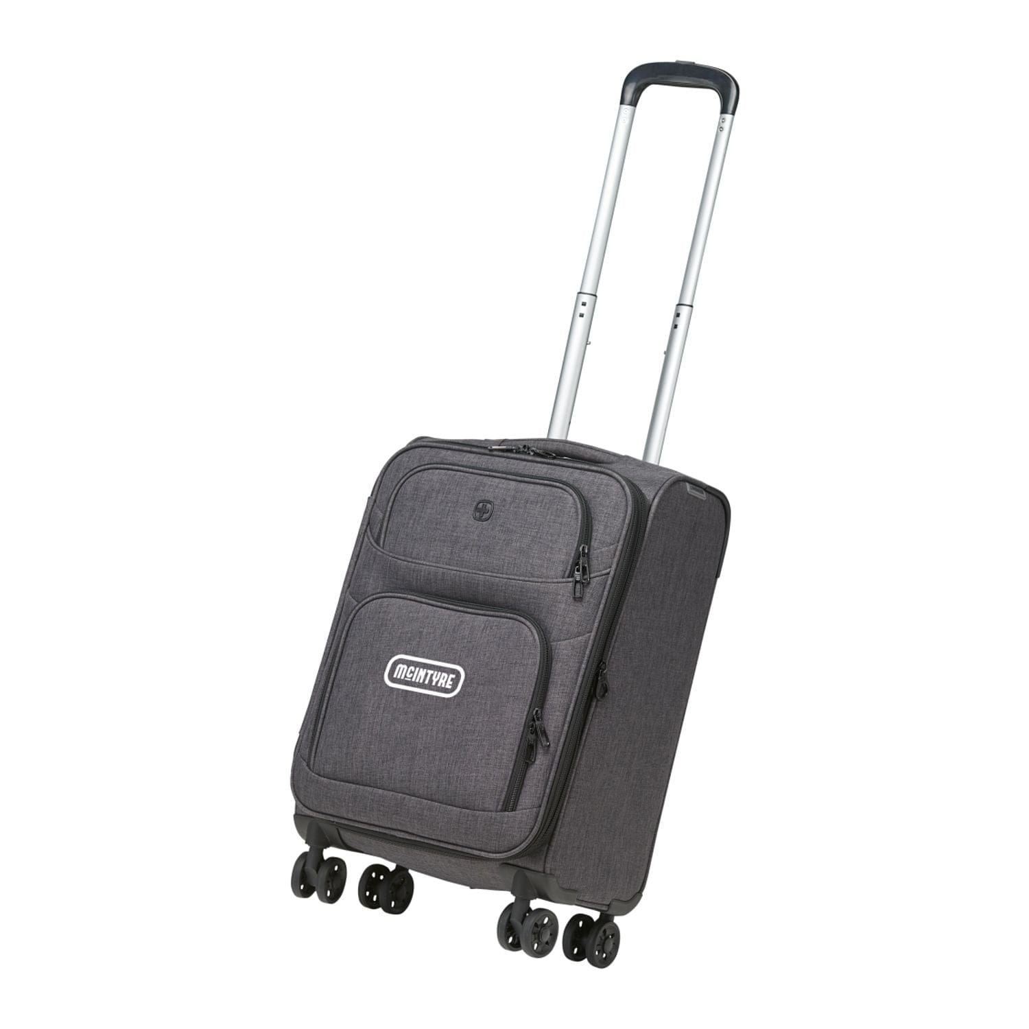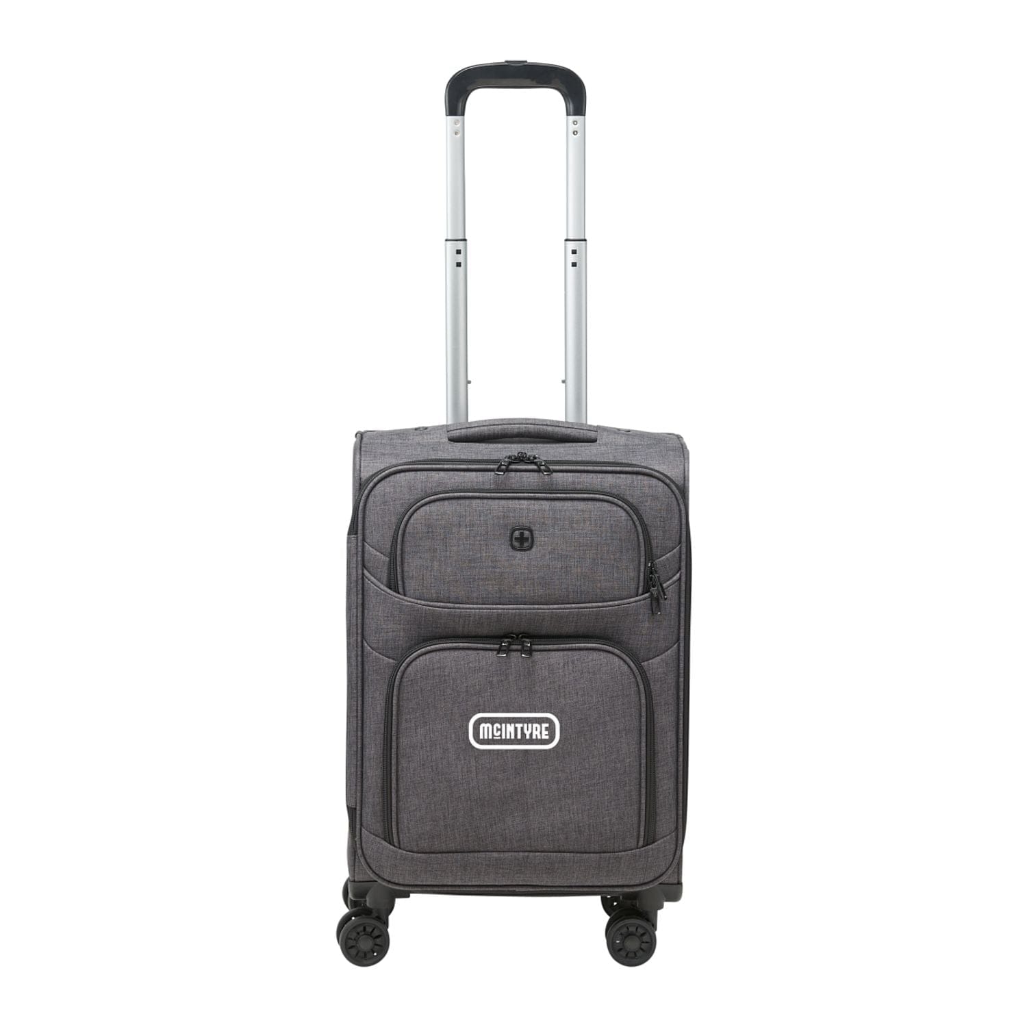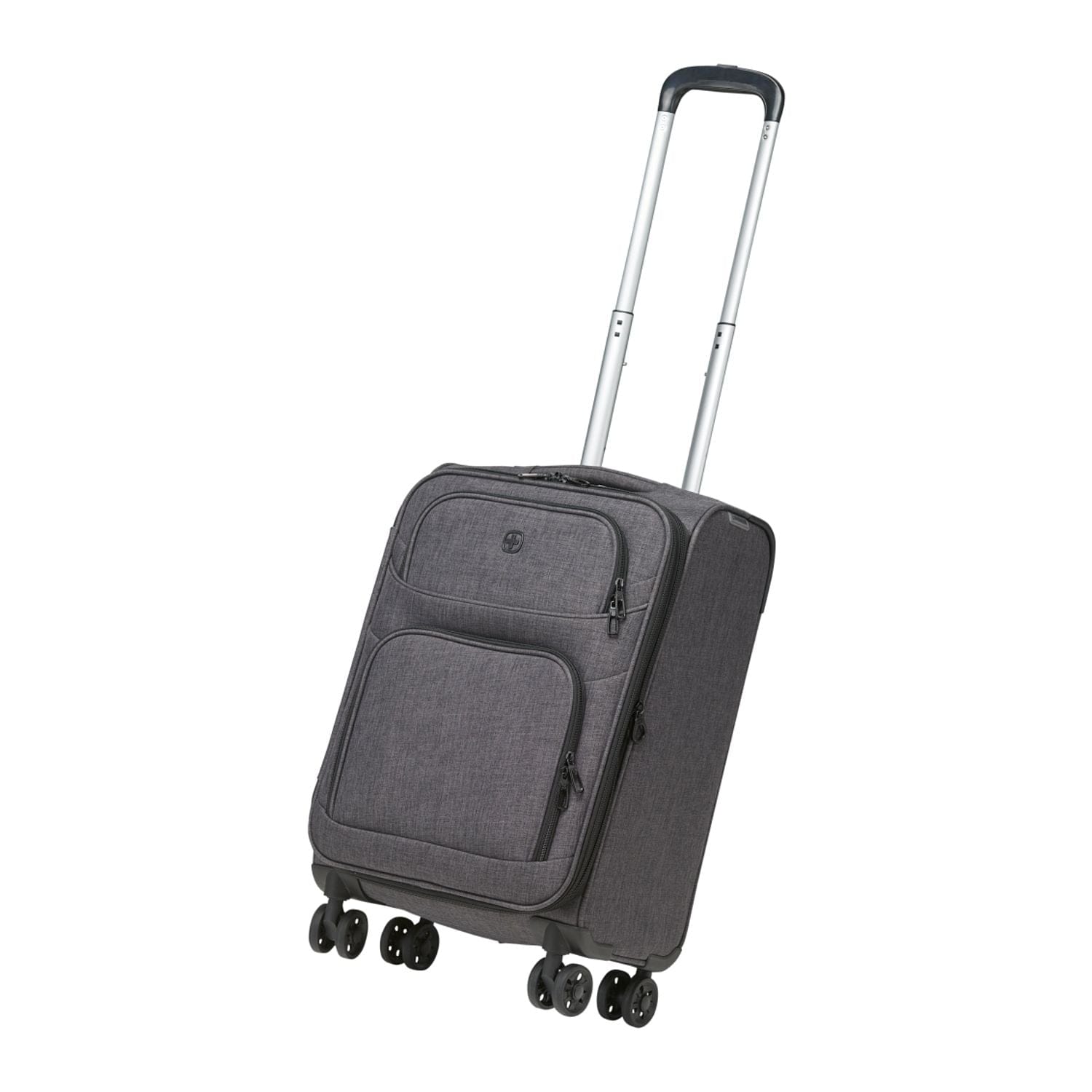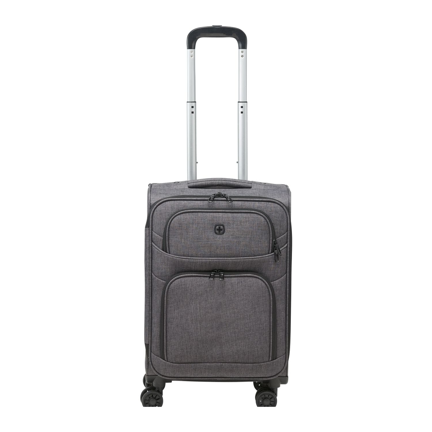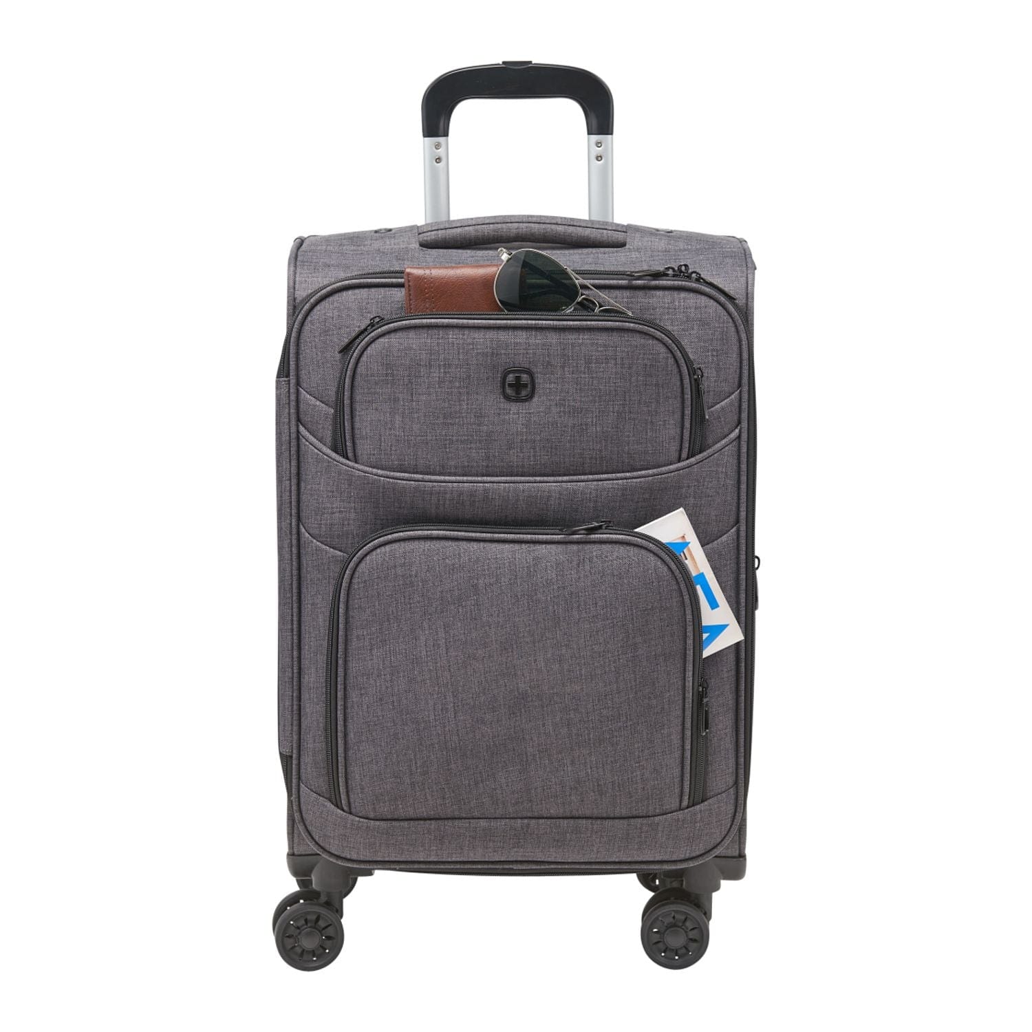 The Wenger RPET 21" Graphite Carry-On is the perfect addition to your luggage set. It rolls on dual spinner wheels that improve maneuverability, while its adjustable telescopic push/pull handle matches any height, making the luggage a good fit for people of all sizes. The interior features a wet pouch and plenty of storage space, along with compression straps and a zippered front panel pocket.