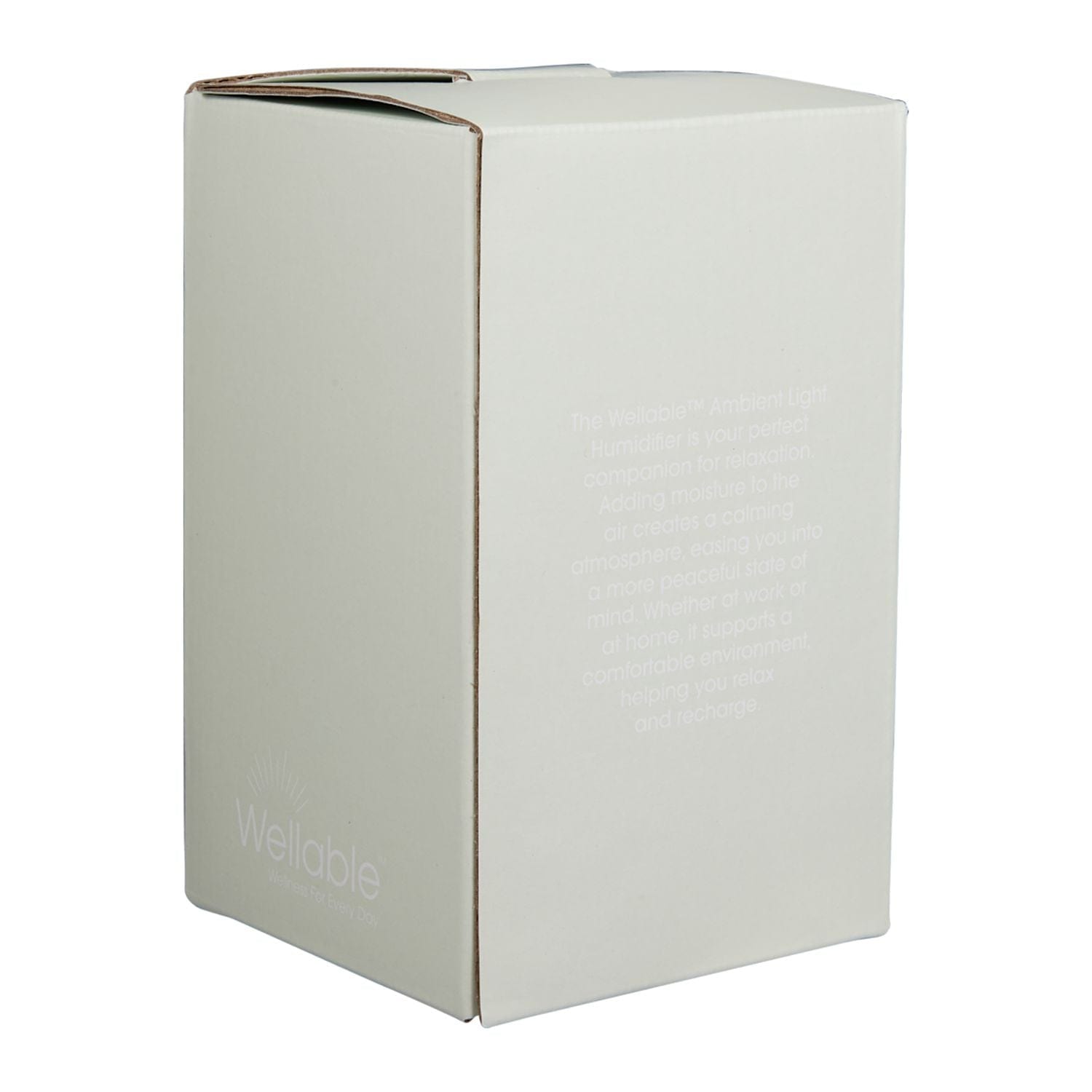 The Wellable™ Ambient Light Humidifier is your perfect companion for relaxation. Adding moisture to the air creates a calming atmosphere, easing you into a more peaceful state of mind. Whether at work or at home, it supports a comfortable environment, helping you relax and recharge. Choose your desired spray time and brightness. Includes type C cable. Comes packaged in a branded FSC® Mix giftbox.