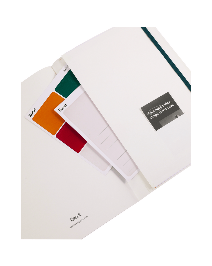 The Karst Pro Series Notebook is designed to keep you organized and focused, providing ample space for brainstorming, planning, and organizing your work. Featuring durable, waterproof, and tear-proof stone paper, this notebook includes 144 pages that are ideal for daily notes, key objectives, and important dates. Thoughtful design elements like colored stickers, index pages, and an expandable back pocket help you keep track of critical notes with ease. The double ribbon page markers and lay-flat thread binding enhance usability, making this notebook a reliable companion.