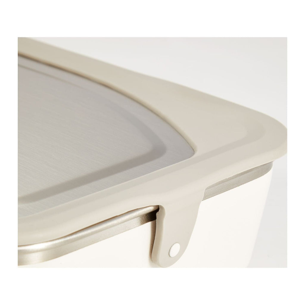 The 34 oz Rise Meal Food Box from Klean Kanteen gives a whole new meaning to “dining out.” Bring Your Own™ breakfast, lunch or dinner on the go. With an airtight seal and backup snap-and-lock tabs, this lightweight, leakproof container keeps food safe and secure. Crafted from certified 90% post-consumer recycled 18/8 stainless steel, the Meal box (without lid) is microwave, oven and dishwasher safe. Decorated Lid is Handwash Only. 34oz capacity.