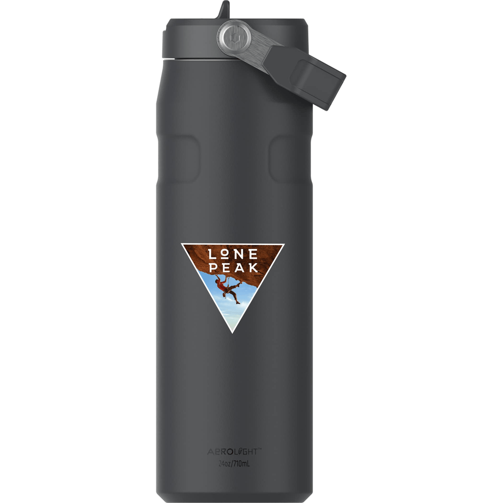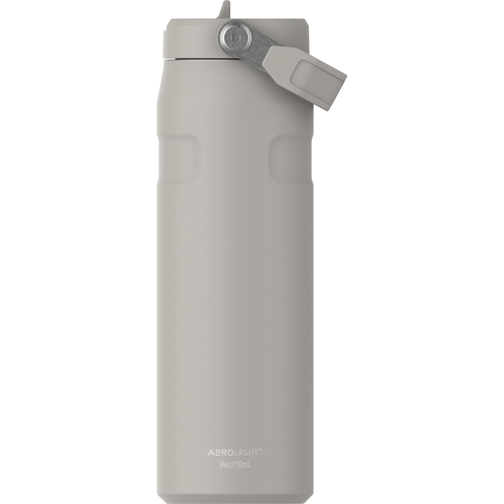 The 24-ounce IceFlow Flip Straw 2.0 Bottle has premium AeroLight™ technology that makes it 33% lighter than standard stainless-steel bottles. Featherweight spun-steel insulation keeps your water ice-cold for hours. The folding handle makes this the perfect grab and go for your next barre class. The Flip Straw 2.0 lid has a larger drink opening and a built-in straw, so you can hydrate faster. Flip to sip, snap it shut and slip the bottle into your bag or car cupholder. You can even pop off the new spout for a deeper clean. Made using 90% 18/8 recycled stainless steel, BPA-free, this bottle will keep your water refreshingly cold for up to10 hours. Hand wash only