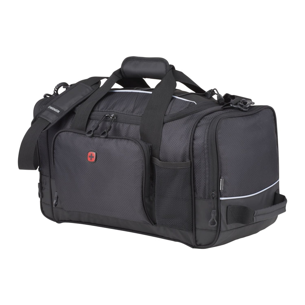 The Wenger Apex 20" RPET Sport Duffel is rugged enough for all of life's adventures, not to mention super roomy! This durable duffel bag features a spacious main compartment, plus two large zip pockets, a front pocket and a mesh water bottle pocket. Perfect for carrying your workout clothes, travel gear, toiletries and more. A front organizer zip pocket is ideal for keys, smartphone, ID, pens, and pencils while a bungee-cord system can cinch an extra pair of shoes and other equipment.
