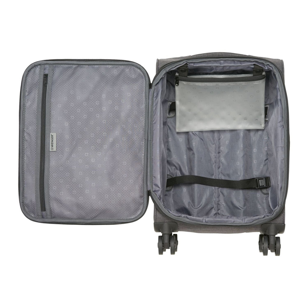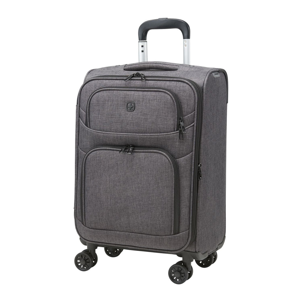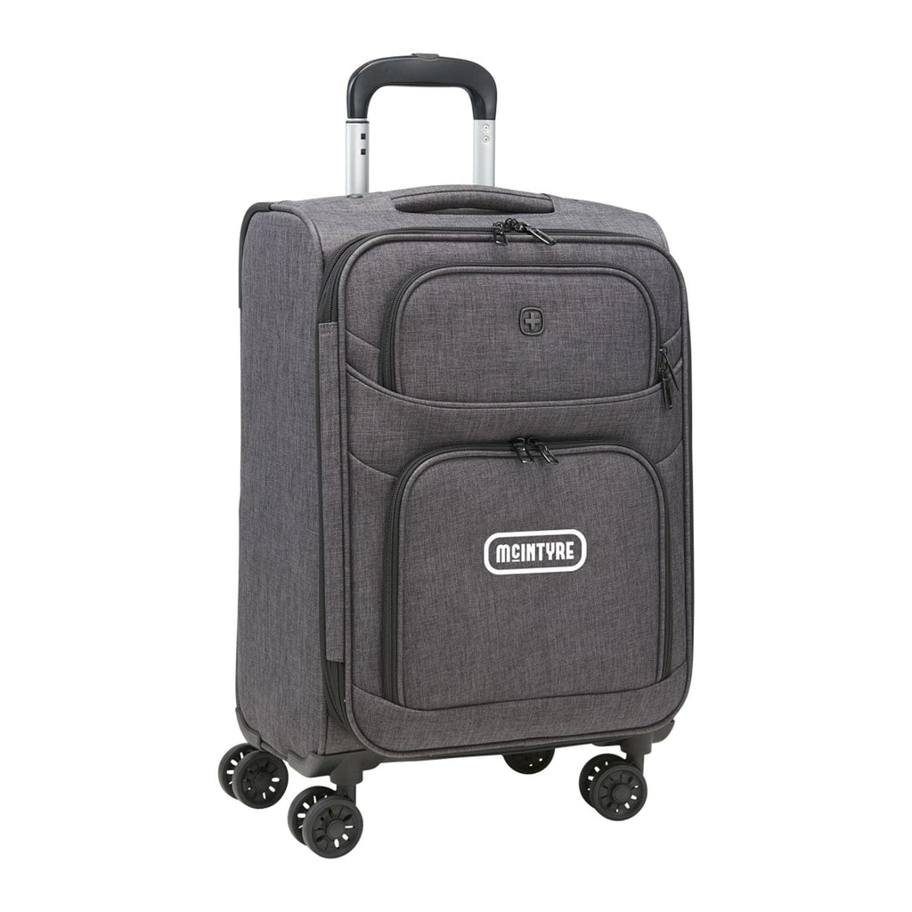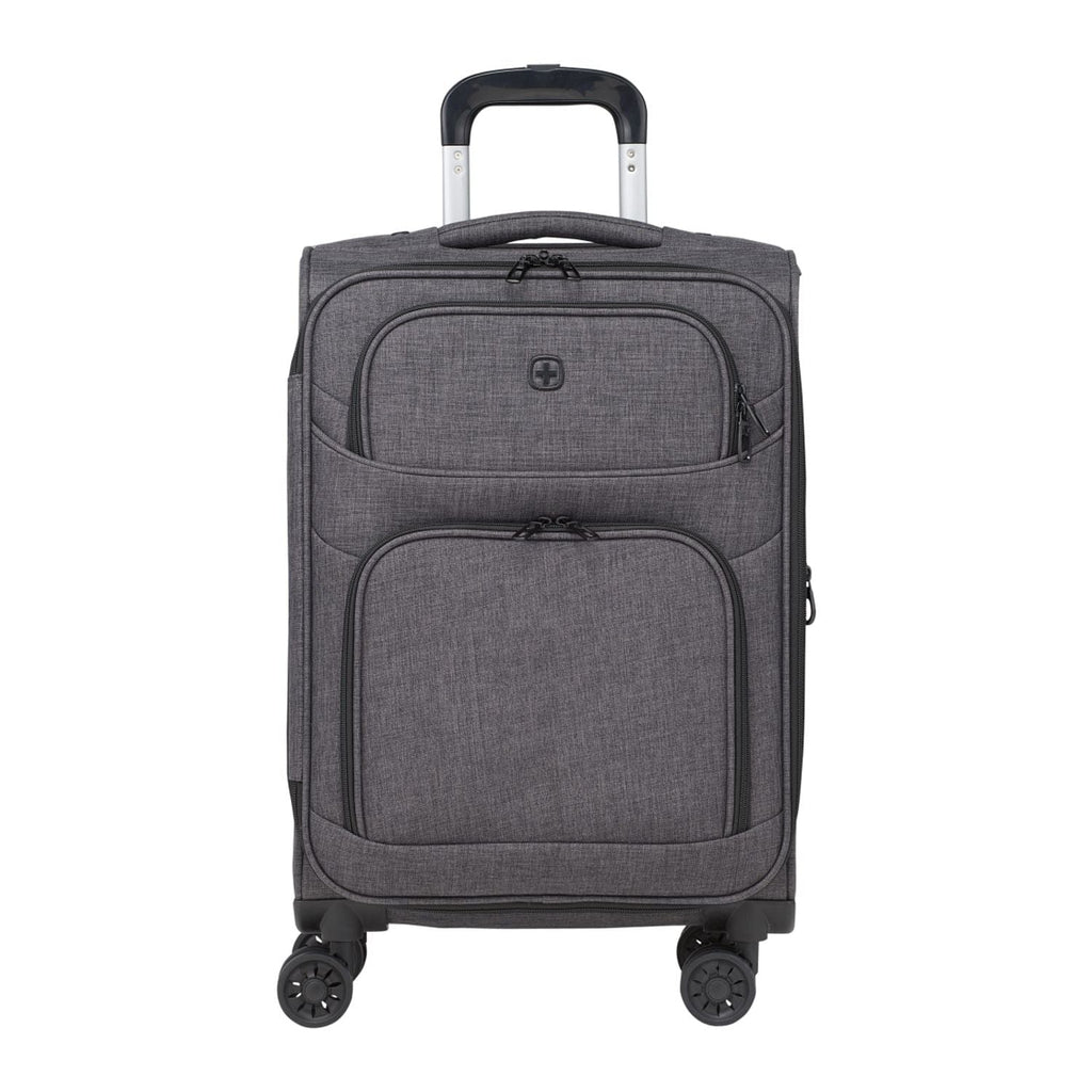 The Wenger RPET 21" Graphite Carry-On is the perfect addition to your luggage set. It rolls on dual spinner wheels that improve maneuverability, while its adjustable telescopic push/pull handle matches any height, making the luggage a good fit for people of all sizes. The interior features a wet pouch and plenty of storage space, along with compression straps and a zippered front panel pocket.