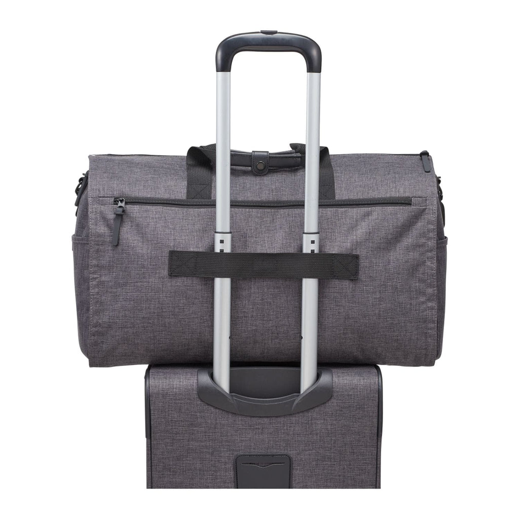The Wenger Getaway 20" RPET Garment Duffel combines the functionality of a garment bag with the portability and simple elegance of a luxury duffel bag. The main compartment unzips to reveal side sleeves for shoes, designated garment storage and space for an entire weekend’s worth of clothing. The exterior boasts two side accessory pockets and pockets on the front and back of the duffel for last minute items.