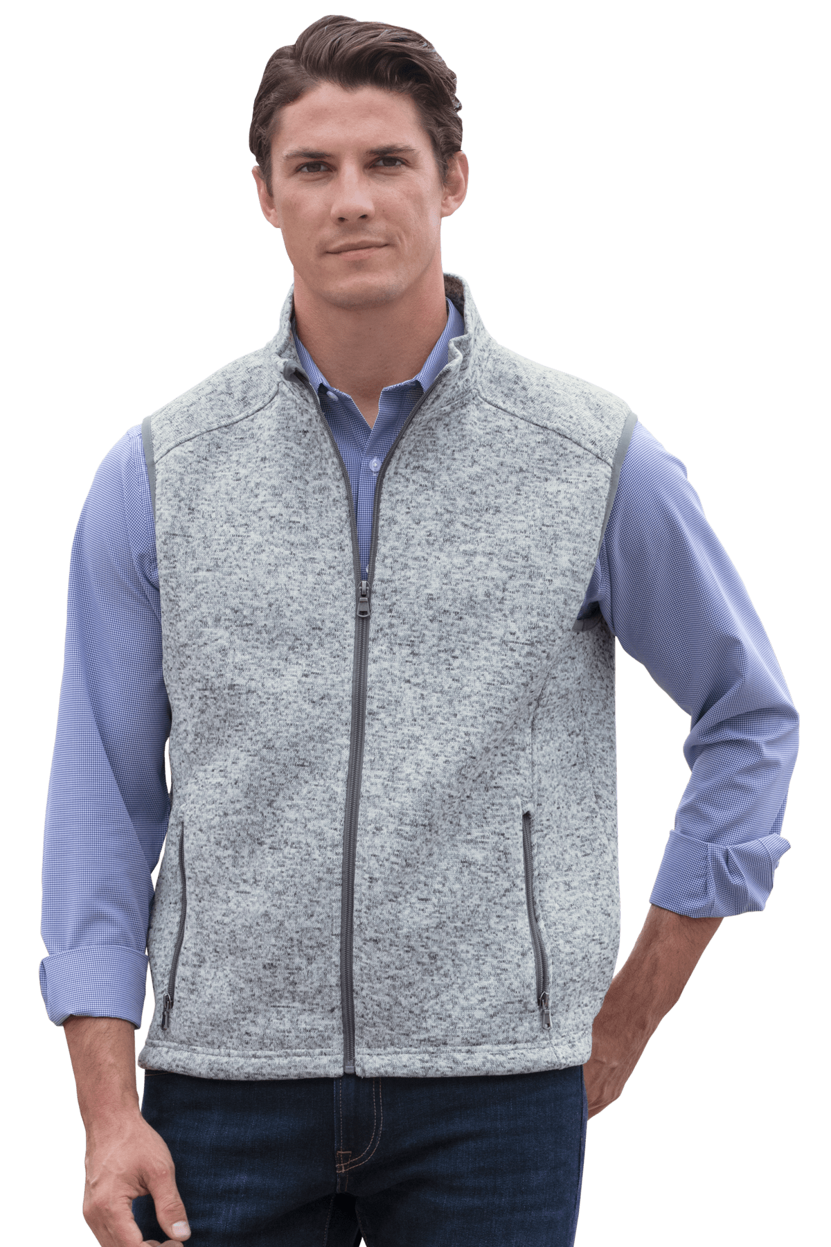 This essential layering piece combines the style of a heathered sweater with the comfort of your favorite fleece.