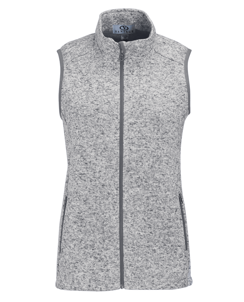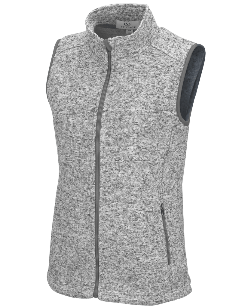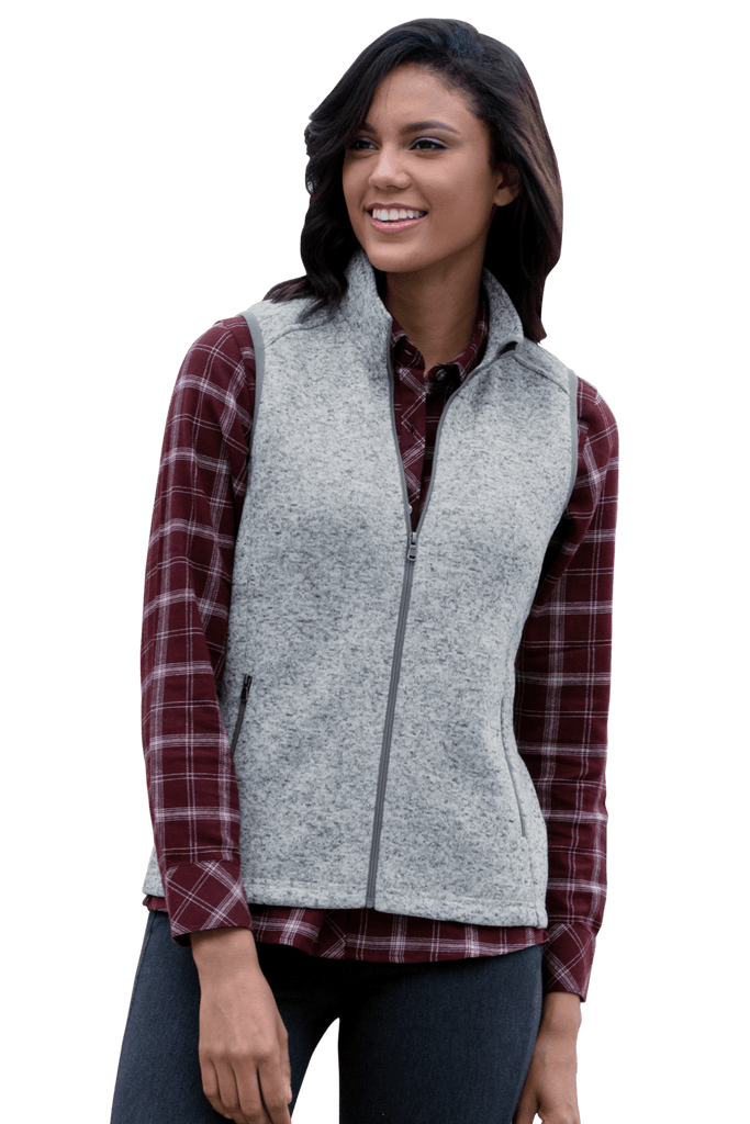 The neutral color and casual styling of our new Summit Vest make this an easy add-on to any outfit. Twisted yarn gives the vest a heathered appearance and the cute curved shape has additional visual appeal.