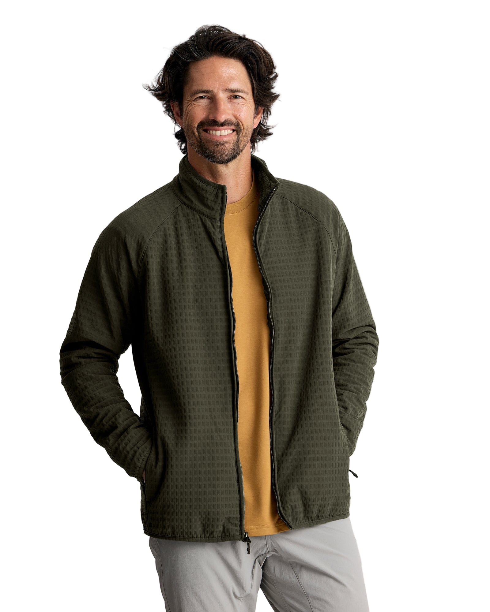 One of the most coveted styles around Free Fly HQ, the Gridback Fleece Jacket is an absolute winner—an innovative combo of classic fleece comfort and streamlined weather-resistance. Our product team worked their fabric sorcery and outfitted the interior with an indulgently soft, high-pile fleece that traps and retains heat throughout gridded channels. They finished it with a bonded, stretch-weave shell that keeps out rain and wind unlike any other fleece. Lightweight and packable, it’s an awesome go-to jacket for transitional seasons and warm enough to layer up when winter’s at its worst.