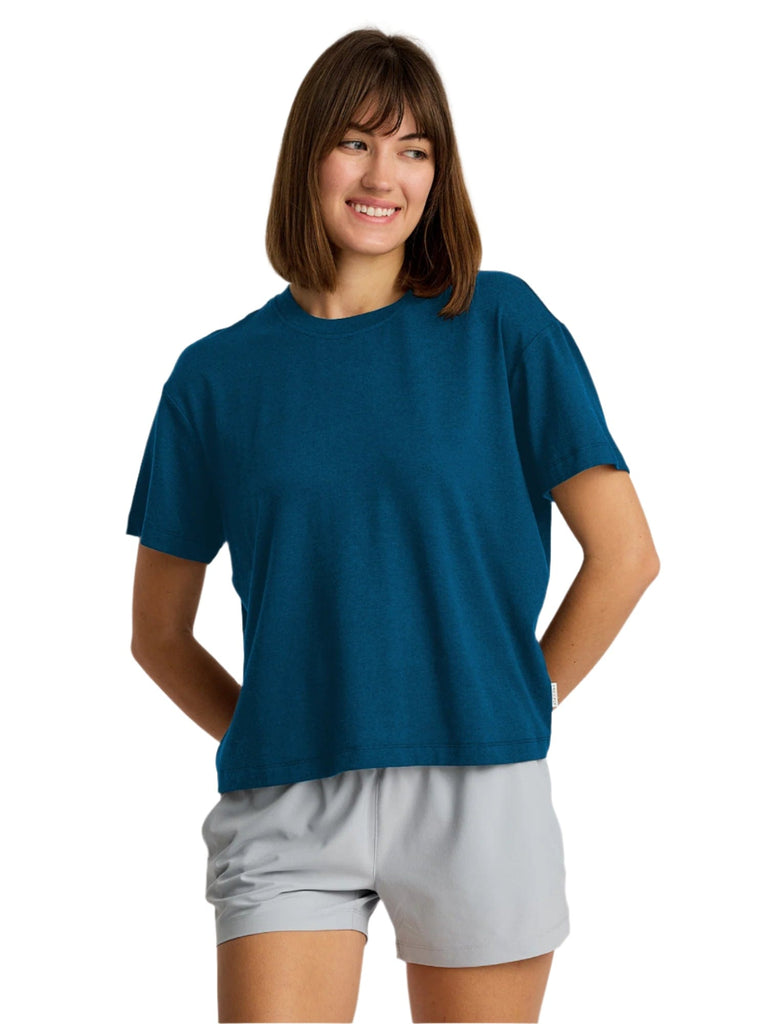 Stretchy but structured, the Current Boxy Tee is effortlessly cool. With a boxy, cropped silhouette, we love pairing it with joggers, leggings, or our Breeze Skirt for a casual weekend look. Crafted from a comfy cotton/bamboo blend, this tee has the drape and structure of your favorite cotton t-shirt, but the stretch and performance benefits of a more athletic style. Like we said: effortlessly cool.