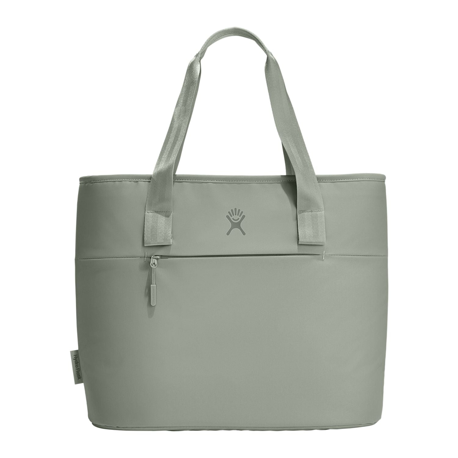 Large insulated tote keeps food fresh for hours. Main body fabric is made of 100% recycled polyester with a durable coating. Fully-lined and leakproof interior for easy cleaning. Collapsible design for quick storage and travel. Robust base for unsupported self-standing. Water-resistant zippers keep moisture out. Outer pocket for quick access to extras. FDA food grade BPA-free liner with welded seams keep spills and splashes contained. Designed for Good: This product was designed and developed with the well-being of people and planet in mind. Care & Use: Avoid sharp objects that may damage the item Remove surface and interior spills with a damp sponge and warm water. Do not use detergents or cleaning agents containing bleach. Leave open to dry.