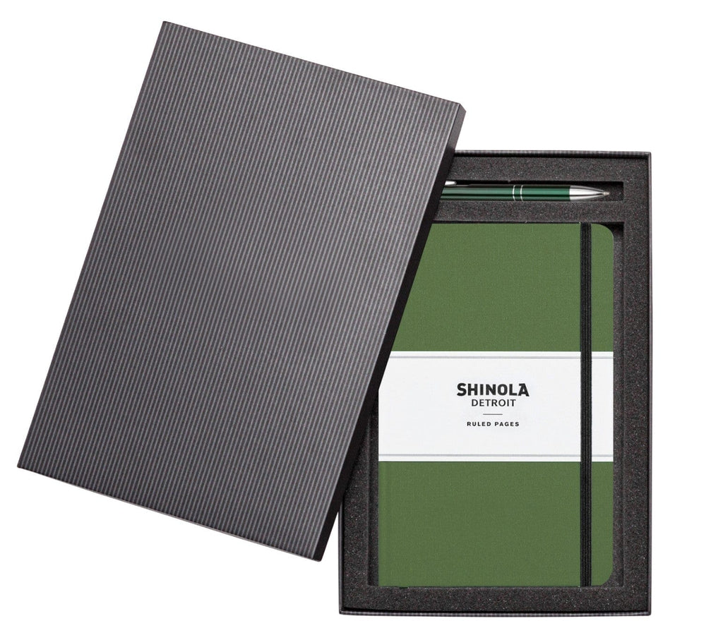 The Shinola® Hard Cover Journal & Clicker Pen Gift Set Features...