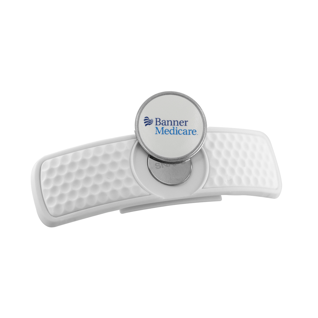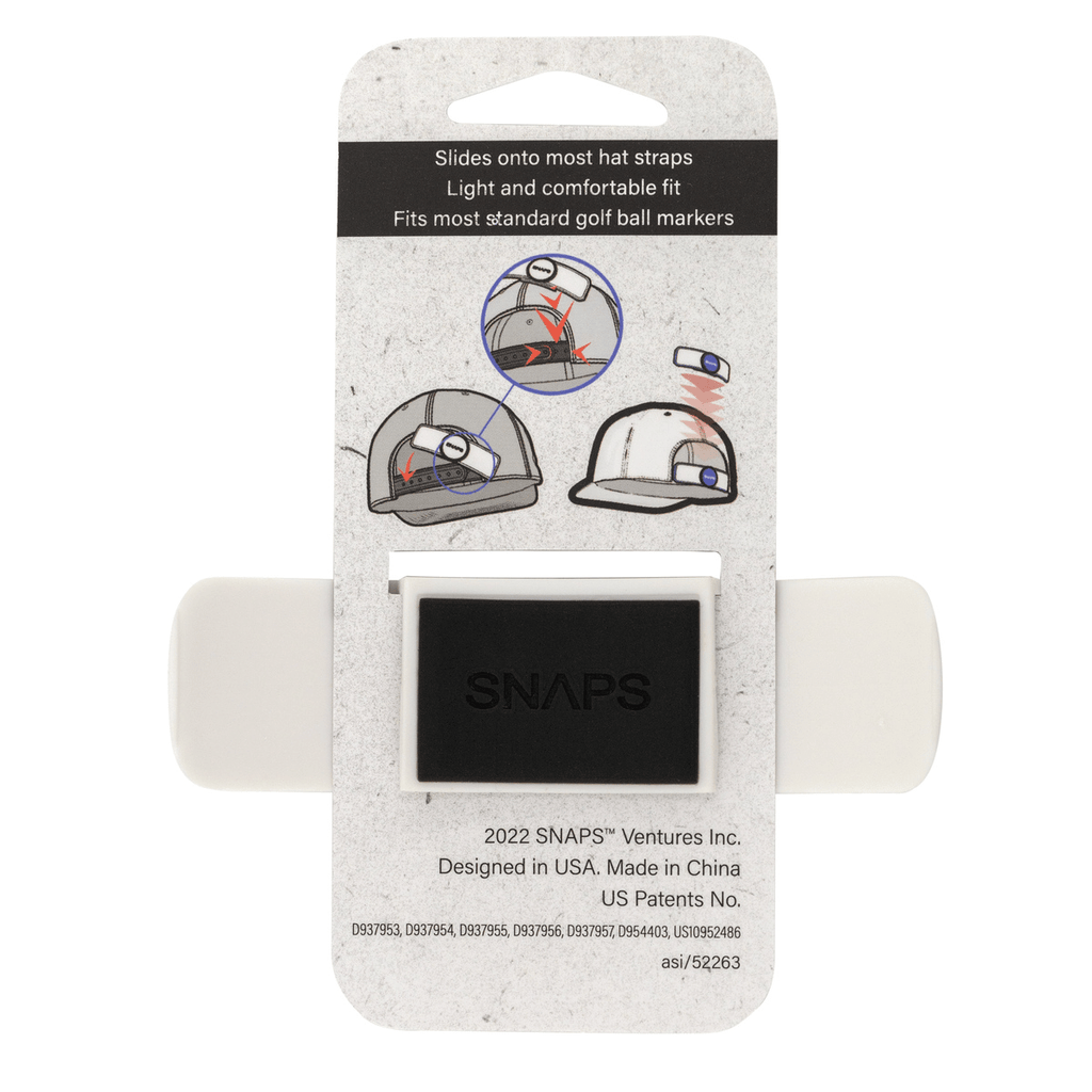 All-weather accessory featuring our patented ball marker cradle conveniently and easily slides onto any adjustable hat strap.