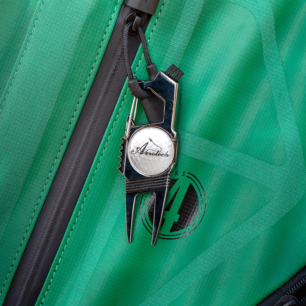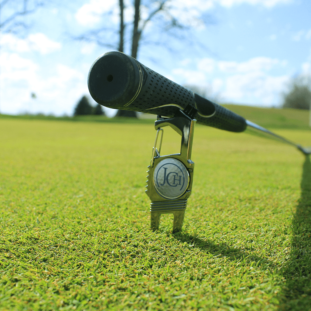 Our best-selling Golf n' Brew divot repair tool features dual prong divot fixer forks and your choice of black nickel or shiny nickel finishes.