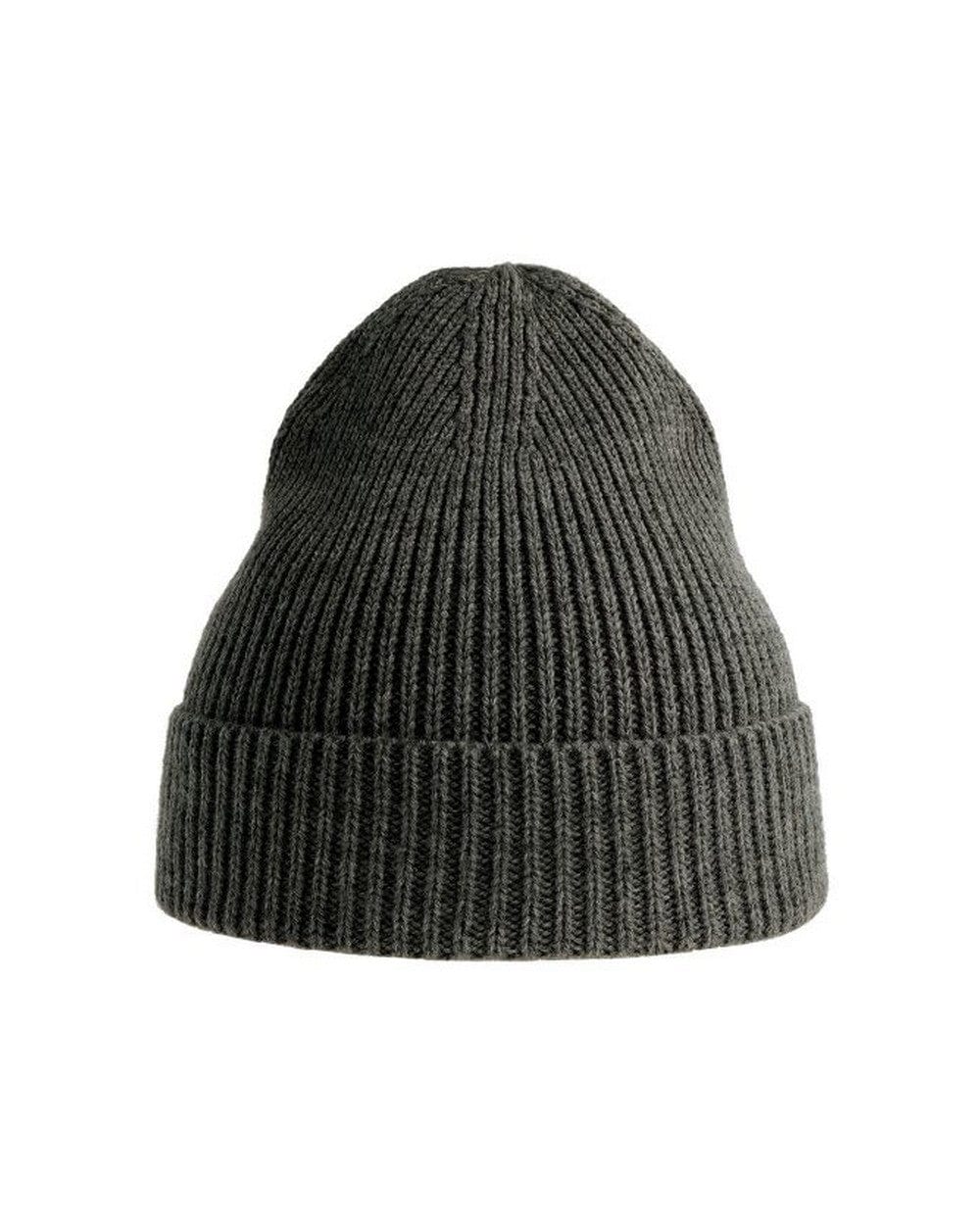 Fine rib-knitted beanie with regular cuff and fully fashioned top. Made of 50% recycled polyester and 50% acrylic. Single knitting to hold its shape well.