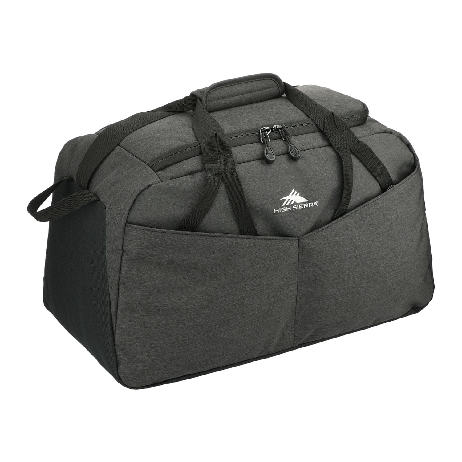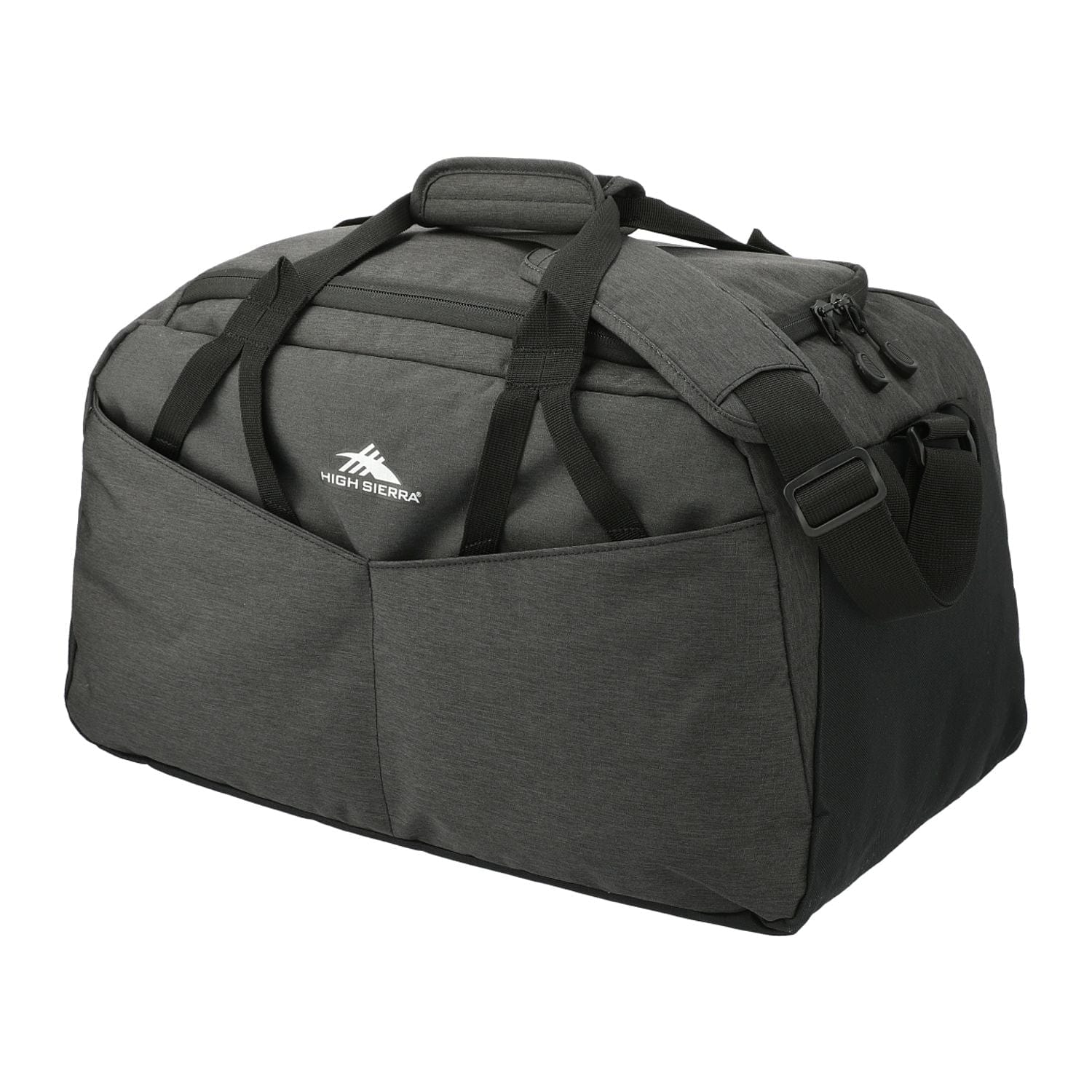 The High Sierra Forester RPET 22" Duffel is designed for all casual travel needs. This duffel features a roomy single compartment design with large U-shaped opening for easy access. The front stash pocket and exterior pockets with organization add extra storage for your must-have items. This duffel is made from water resistant fabric and features a wipe clean interior. Carry using the top grab handles or the adjustable, padded shoulder strap.