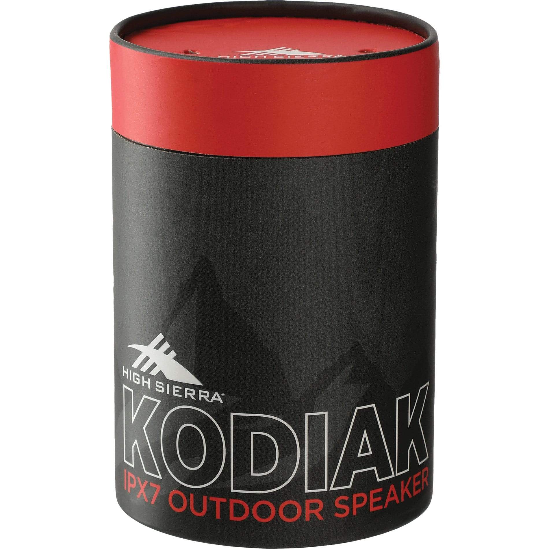 No matter the location you can count on the High Sierra Kodiak IPX7 Outdoor Bluetooth Speaker to deliver. With an IPX7 Waterproof rating the Kodiak can be submerged underwater for up to 30 minutes. The Kodiak features a rechargeable 5000mAh battery that provides up to 12 hours of playback time at max volume. To charge the Kodiak, simply place it on a wireless charging pad or use the provided micro USB cable. Once your journeys over the Kodiak makes a great desktop speaker with built in music controls and a microphone for hands free calling. With stereo sound (2 x 3 Watt) and a built in passive radiator the speaker will be heard around the camp site or conference table. Bluetooth Version 4.2. Charging Time: Up to 8hrs. Bluetooth working range is 10 meters (33 feet).