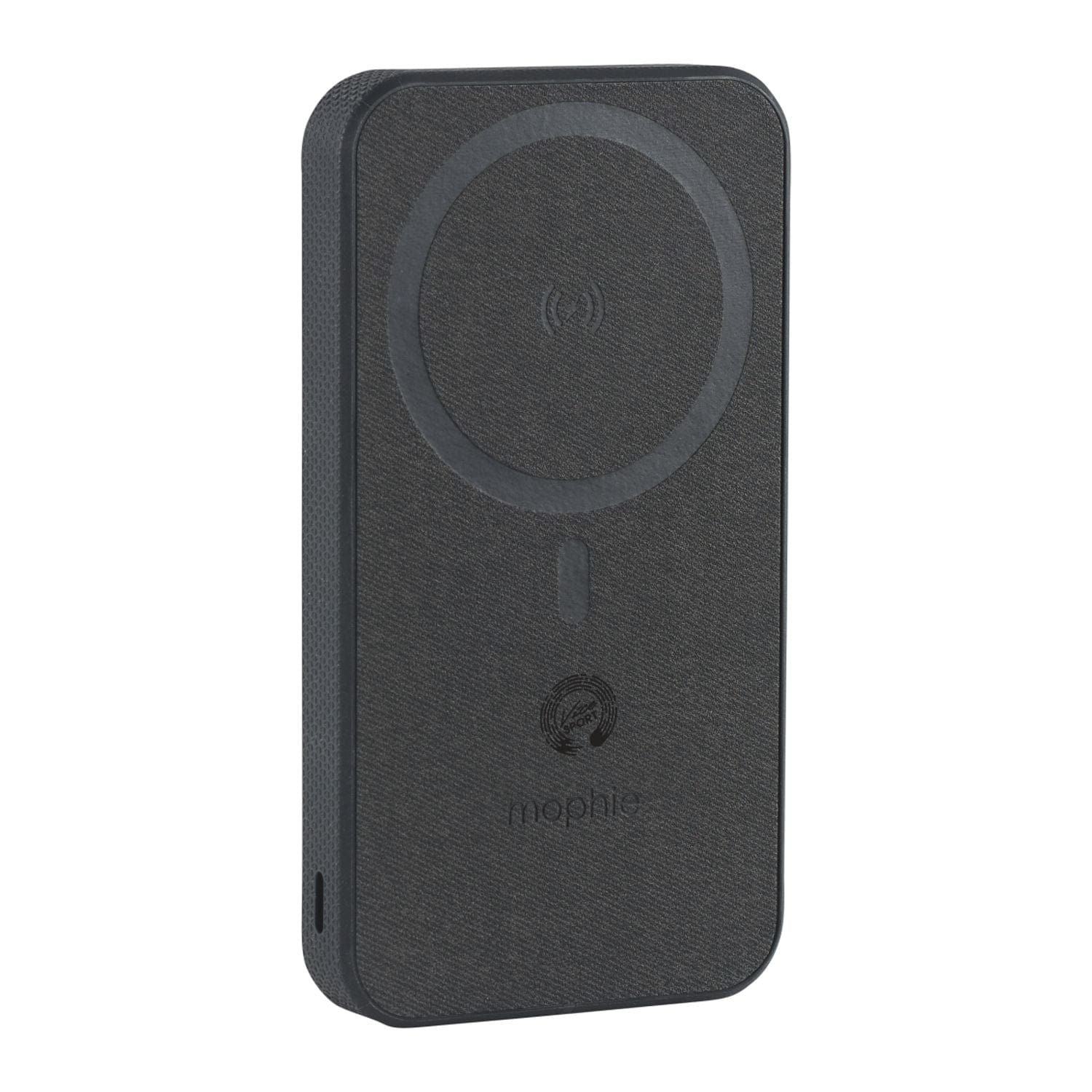 The mophie® Snap + 10000 mAh Powerstation Stand has a rechargeable 10,000 mAH/37Wh lithium polymer battery that works as a wireless charging pad or a regular power bank on the go. The inside magnetic hold ensures accurate placement for iPhone 12/13/14 series. A handy stand folds out when you want to prop your phone up and folds back in when you just want to charge. The included snap adapter can easily attach to the back of a non-MagSafe compatible iPhone or any other smartphones. It comes with a standard ¼ inch - 20 threads/square inch tripod socket for added stability during video calls or video streaming. The Type-C port is compatible as an input and output for charge and discharge. USB-A-to-Type-C cable included. Works with most plastic phone cases on. Packaged in a premium gift box. Power banks are permitted in carry-on luggage only, and at the discretion of TSA agents. Please charge power bank before initial use.