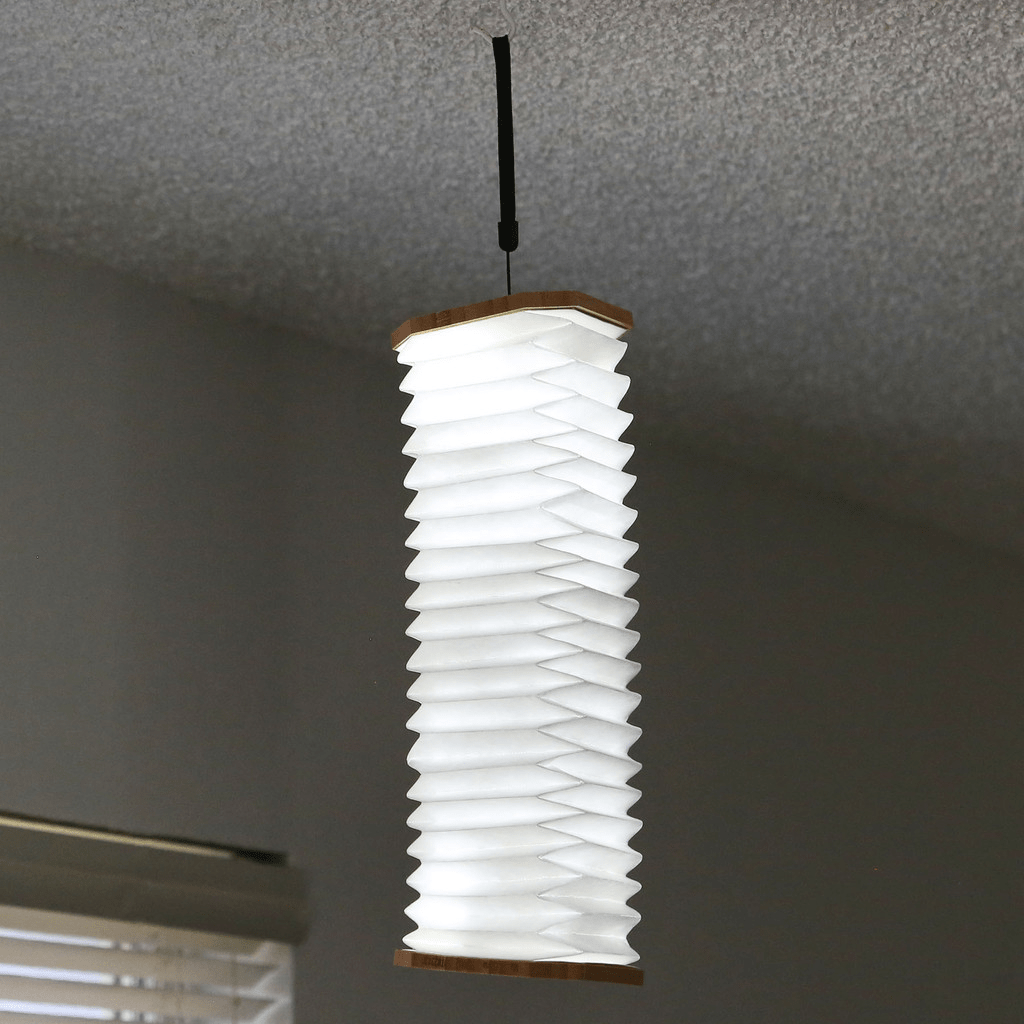 Introducing the Accordio Light: A versatile marvel crafted with sustainable bamboo and innovative Tyvek paper featuring three adjustable light settings. Bend, fold, and illuminate with elegance.