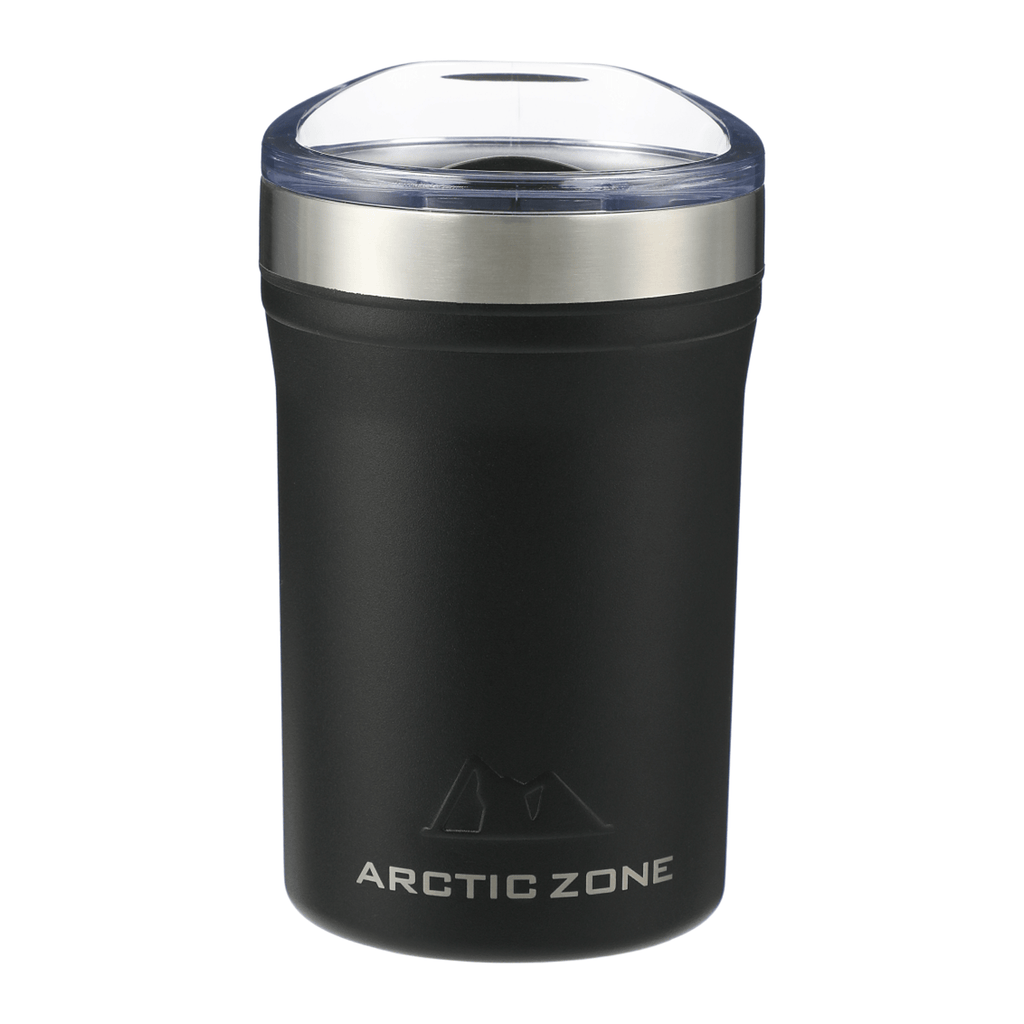 Enjoy a beverage by drinking through the push-on lid with slide closure, or place a 12oz can inside the tumbler. You choose! Durable, double-wall stainless steel vacuum construction with copper insulation, which allows your beverage to stay cold for 24 hours and hot for at least 8 hours. The construction also prevents condensation on the outside of the tumbler. On-trend, durable powder coating. Wide opening for comfortable filling and pouring. Retail gift box included. 12oz w/o lid attached.