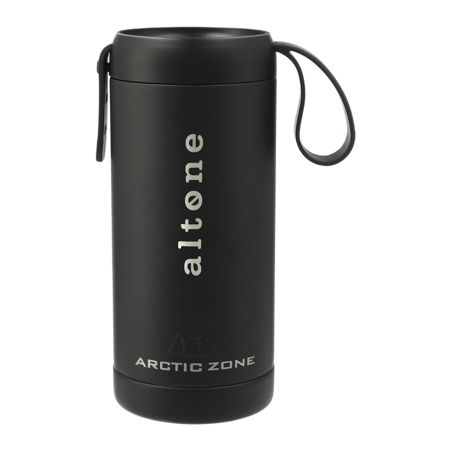 The innovative, on-trend Arctic Zone® Titan 20oz Meal Container is copper-insulated and holds 560ml, with a detachable snack storage space that holds an extra 150ml. It includes a foldable spoon that conveniently stores on the lid of the snack container. It also includes an adjustable silicone strap. Keeps food cold for up to 24 hours and hot for up to eight.