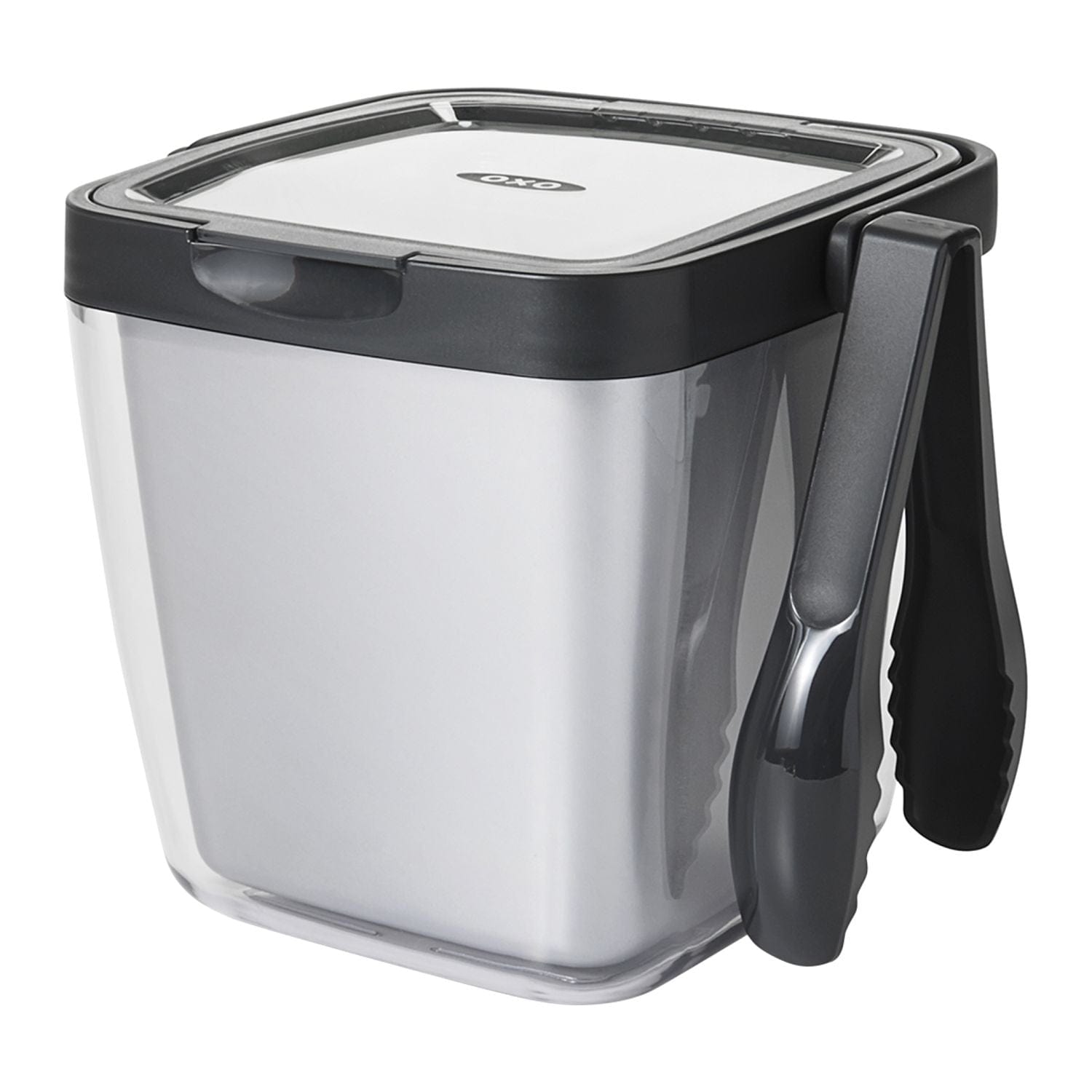 Be prepared for any party, inside or out, with this insulated Ice Bucket. Includes nylon tongs that hang conveniently from either side and a removable tray that holds drink garnishes. The carrying handle stays out of the way when not in use and the meltwater reservoir keeps meltwater away from cubes. Handwash all components.